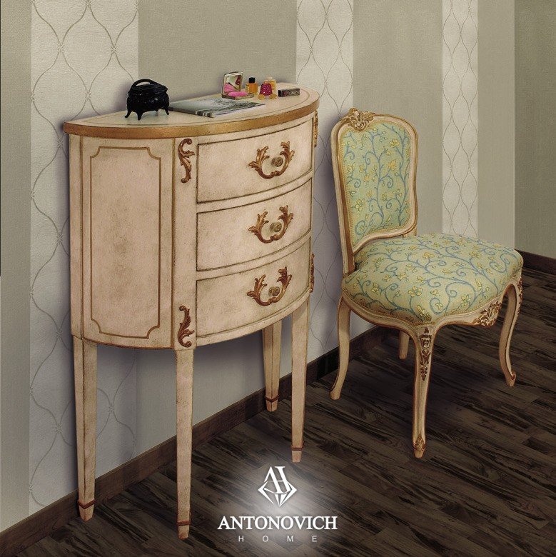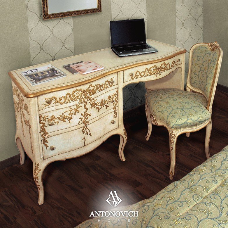 В коллекцию входят: письменный стол, стул, кровать, ночной стол, консоль, комод.