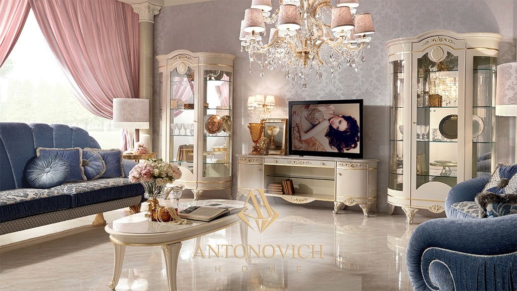 Ещё одна особенность коллекции «Diamante» — лакировка светлых тонов и позолота, насыщающие атмосферу светом и теплом.