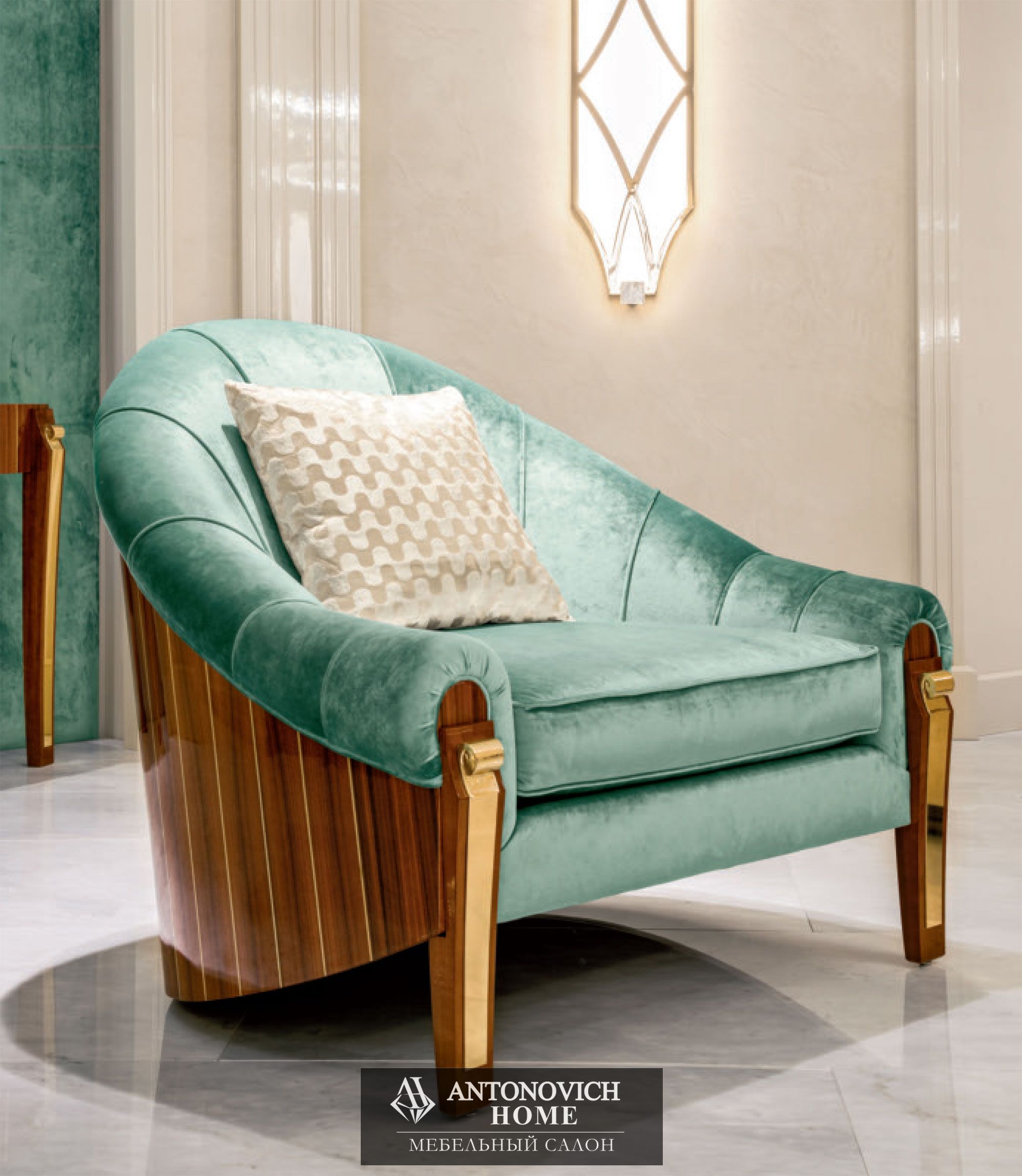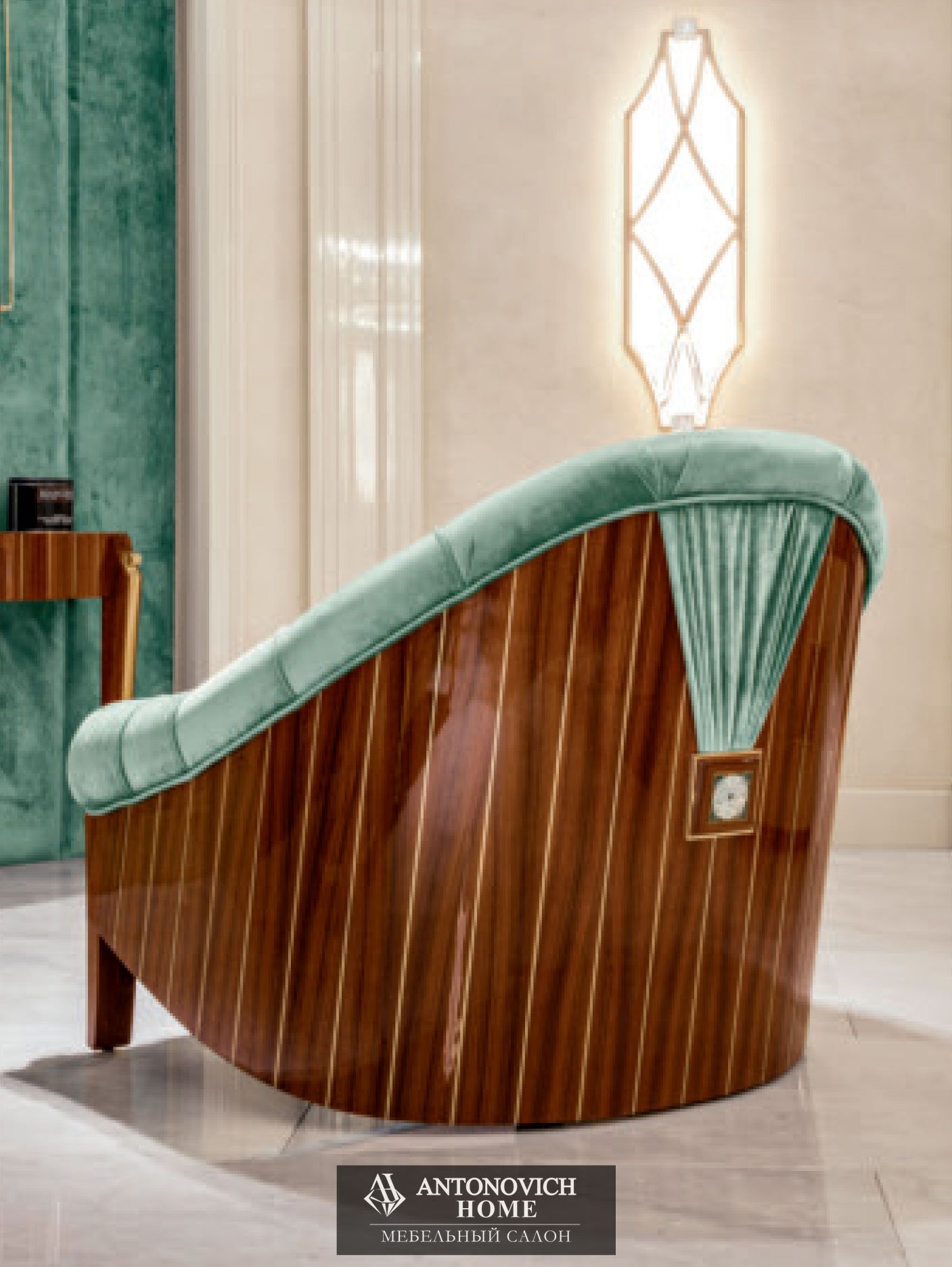 Эта идея современной гостиной навеяна коллекцией Cafedesart итальянской компании Bianchini, олицетворяющей дизайн ар деко. Основной древесиной изделий является палисандр.