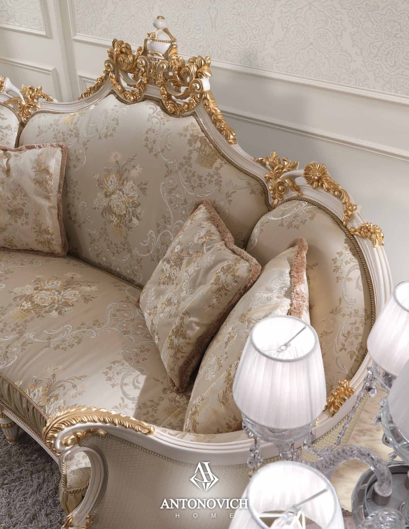 | 3-местный диван Ceppi с резьбой ручной работы в античной лакировке, отделка золотыми листами | Д 240 Г 128 В 140 |