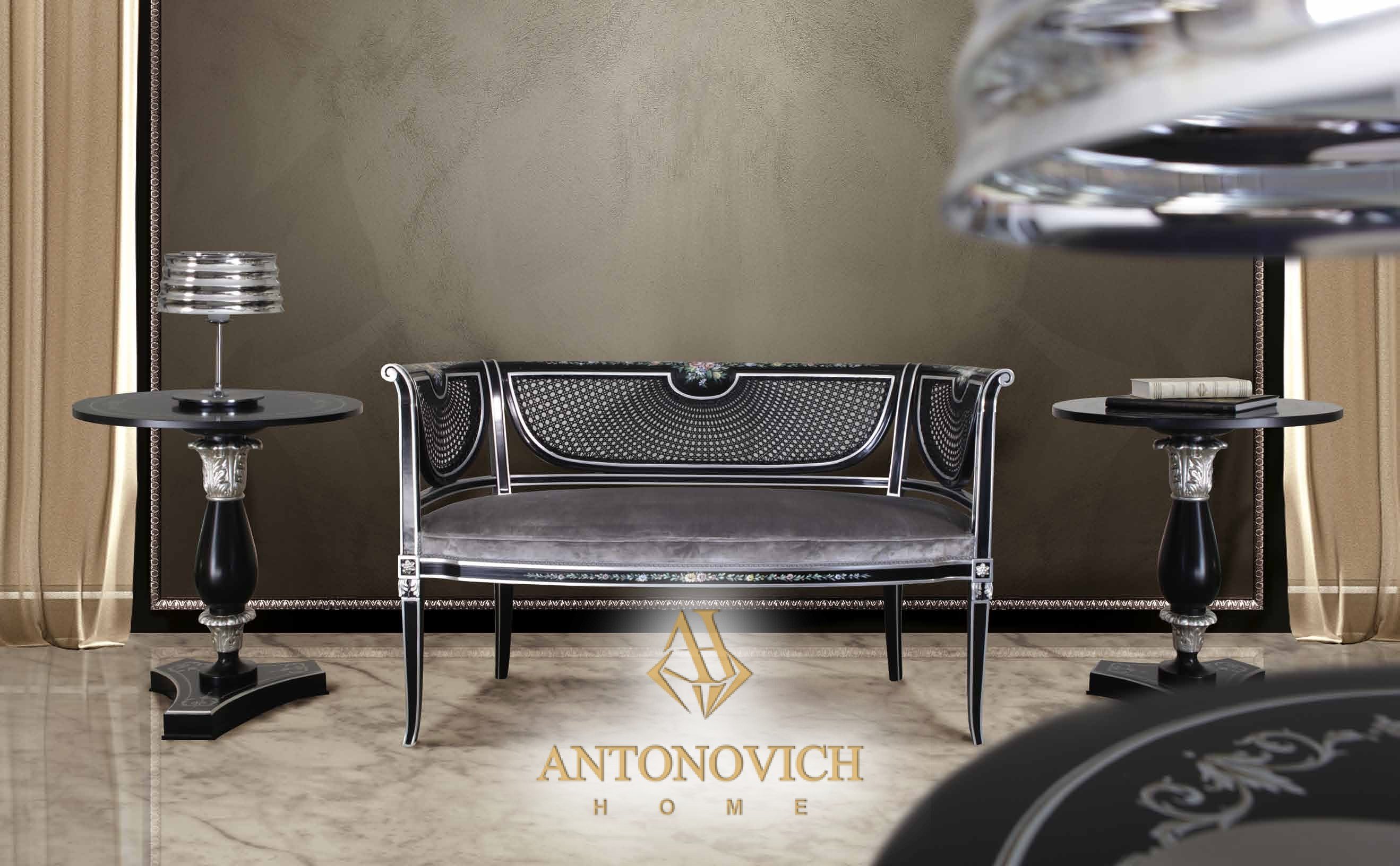 | Маленький диван Ceppi, чёрный лак, ручная роспись, серебряная отделка | Д 128 Г 67 В 80 |
