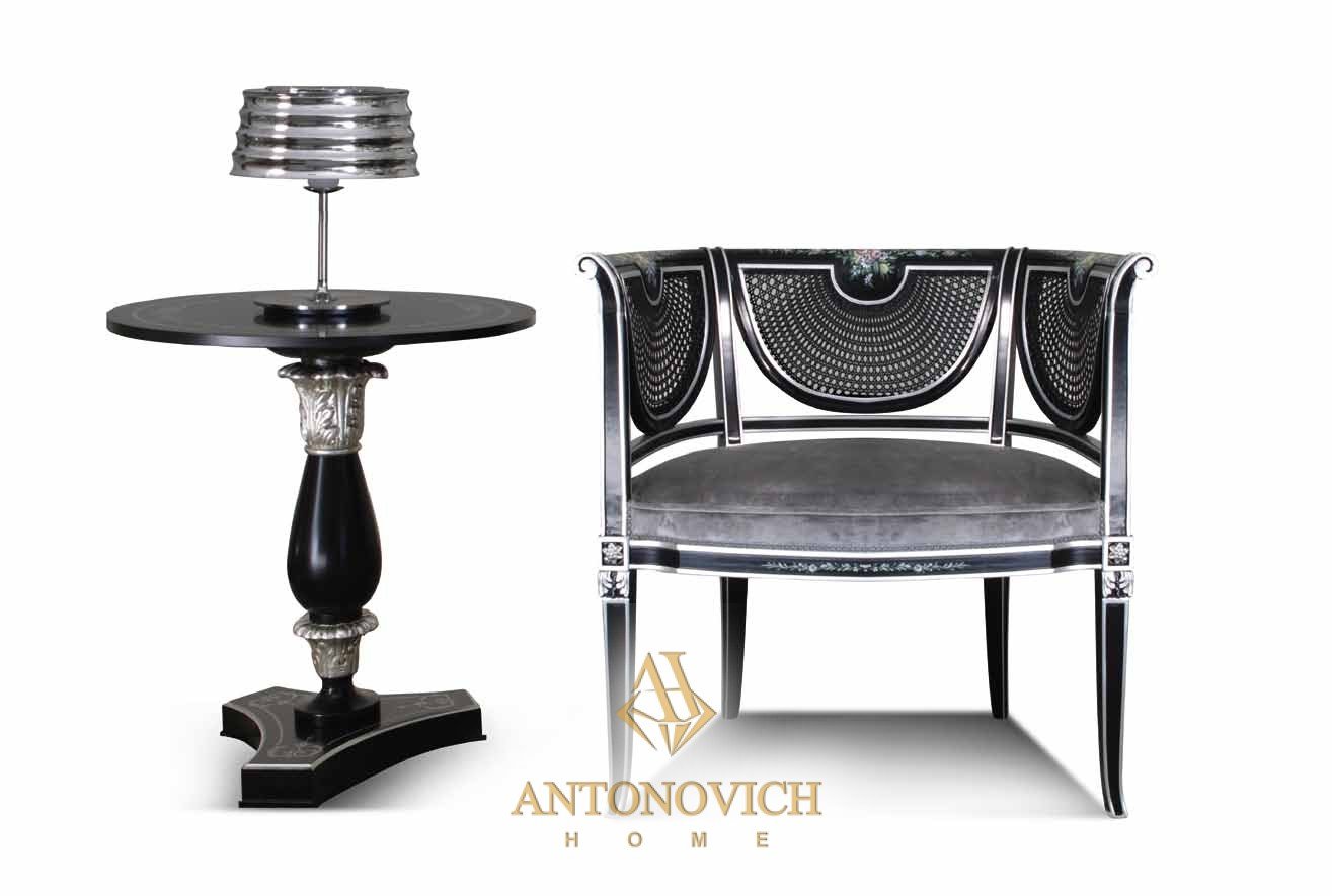 | Кресло Ceppi, чёрный лак, ручная роспись, серебряная отделка | Д 65 Г 62 В 80 |