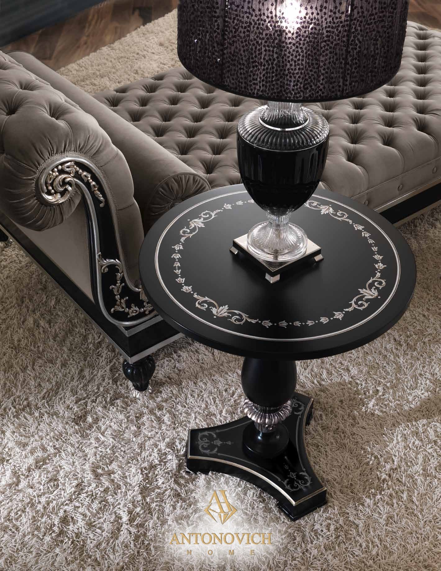| Маленький круглый стол Ceppi, чёрный лак, ручная роспись, серебряная отделка | Ø 60 В 70 |
