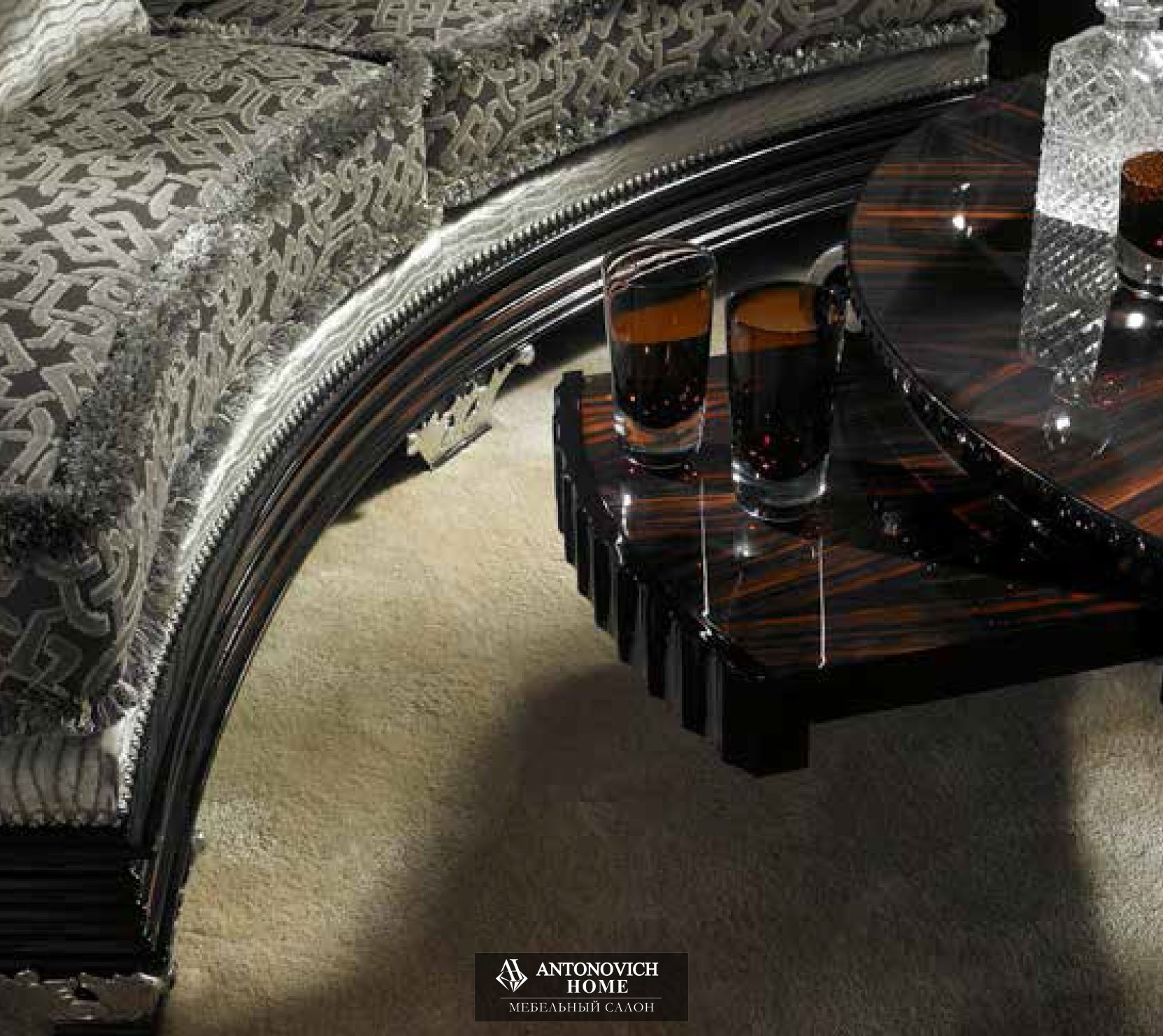 - журнальный столик Tulipe из макассара, черного дерева, лакированные детали и серебряный лист;