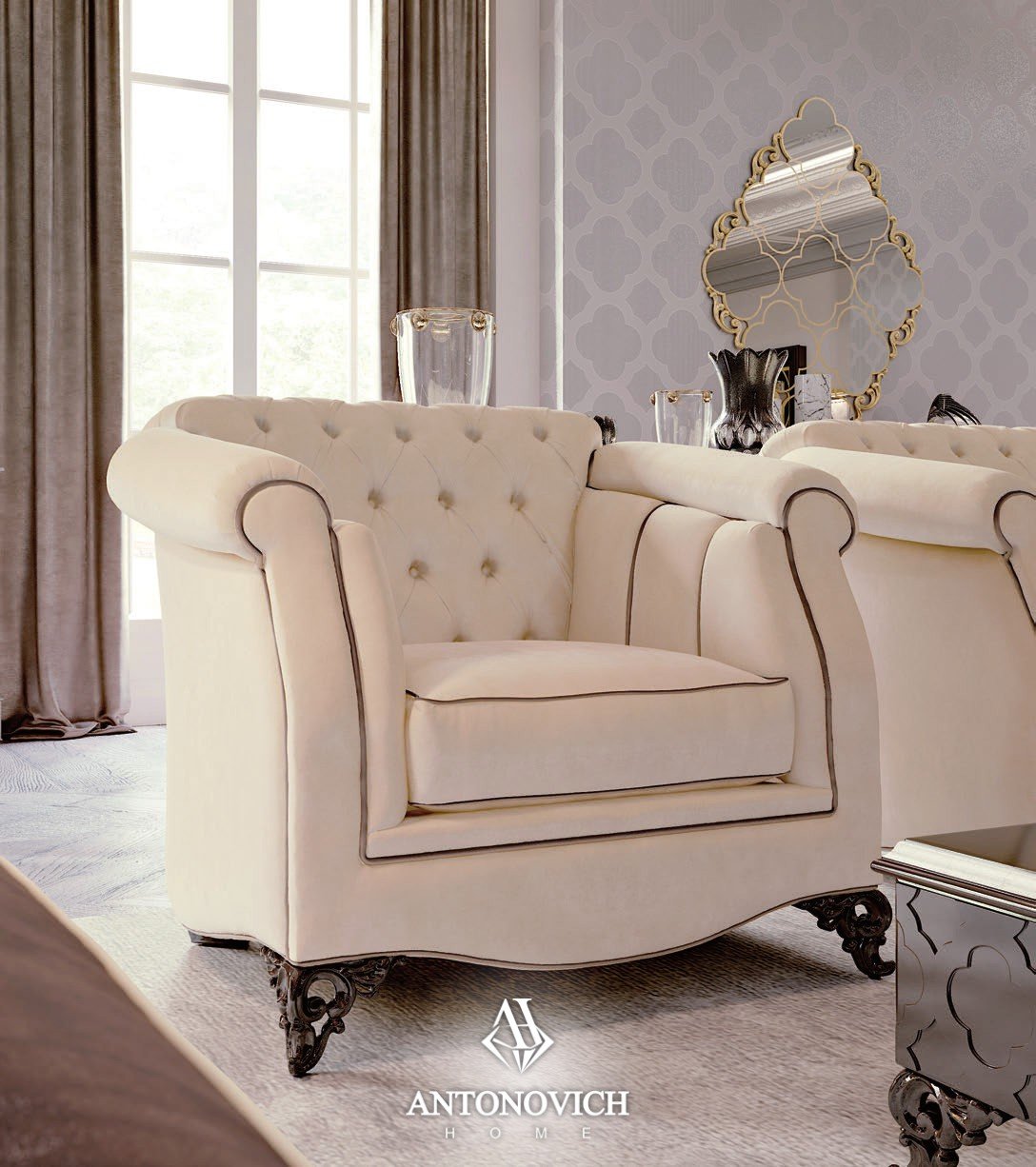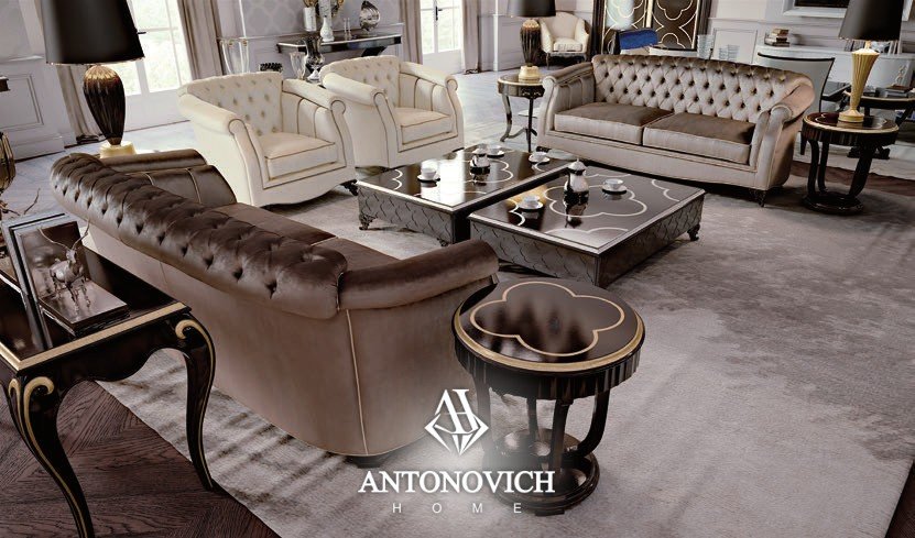 В коллекцию входят: диваны, кресла, кофейный столик, боковой круглый столик, пуф, витрина, консольный столик.