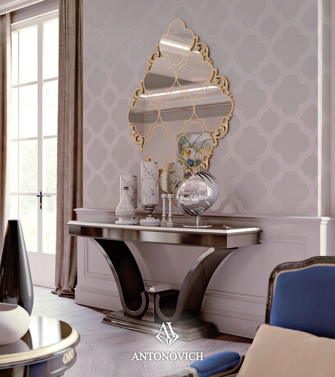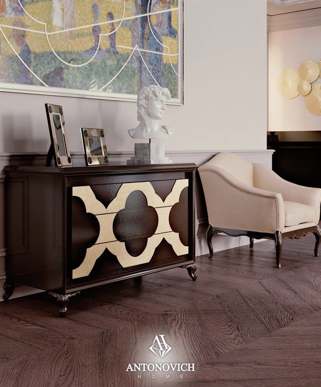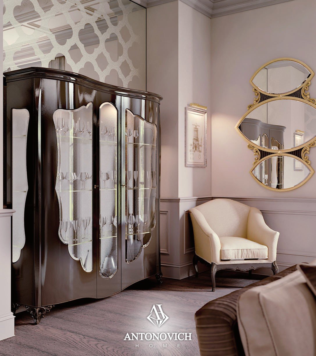 Созерцание скульптурных ар-декошных форм с повышенной динамичностью конфигураций, беспокойным ритмом затейливых линий и форм, дарит наслаждение, а гостиная становится центром притяжения.