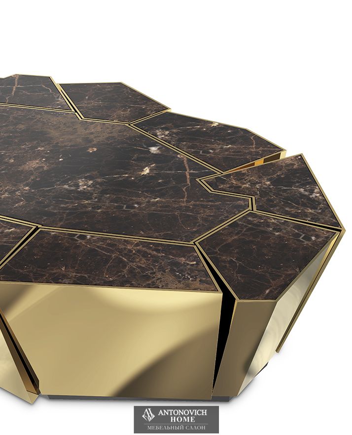 Журнальный стол Crackler выделяется сложностью ручной работы с латунью и техникой, используемой для нанесения шпона корня грецкого ореха. Он подойдет как элемент вестибюля гостиницы, а также стол для вашей гостиной.