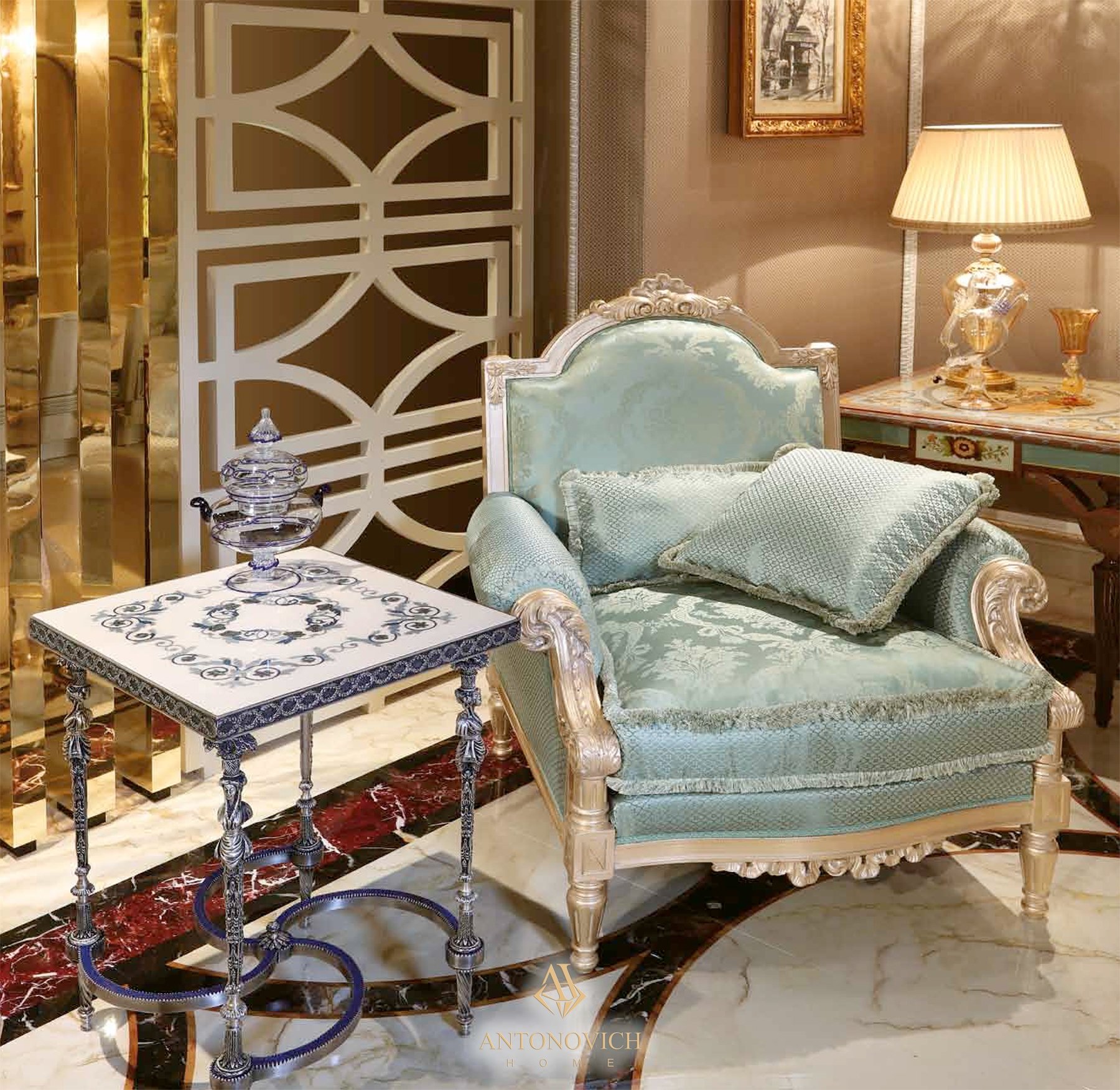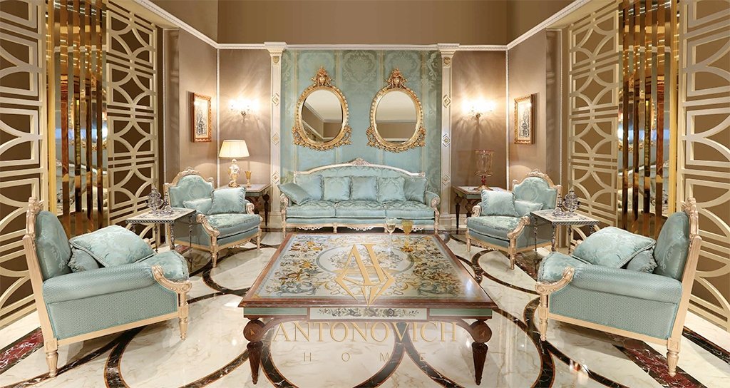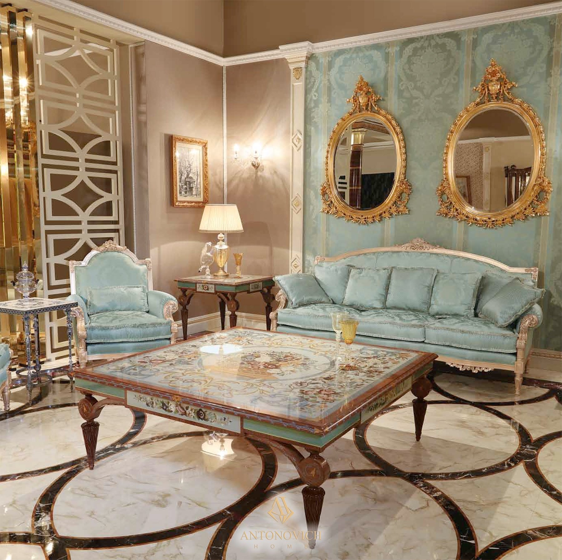 В коллекции мебели для гостиной Diantha культура итальянской школы мебельного производства, богатая цветами и тонами, трёхмерными инкрустациями, изысканным деревом и красивыми украшениями ручной работы, такими как перламутр — проявляется в прекрасных предметах мебели.