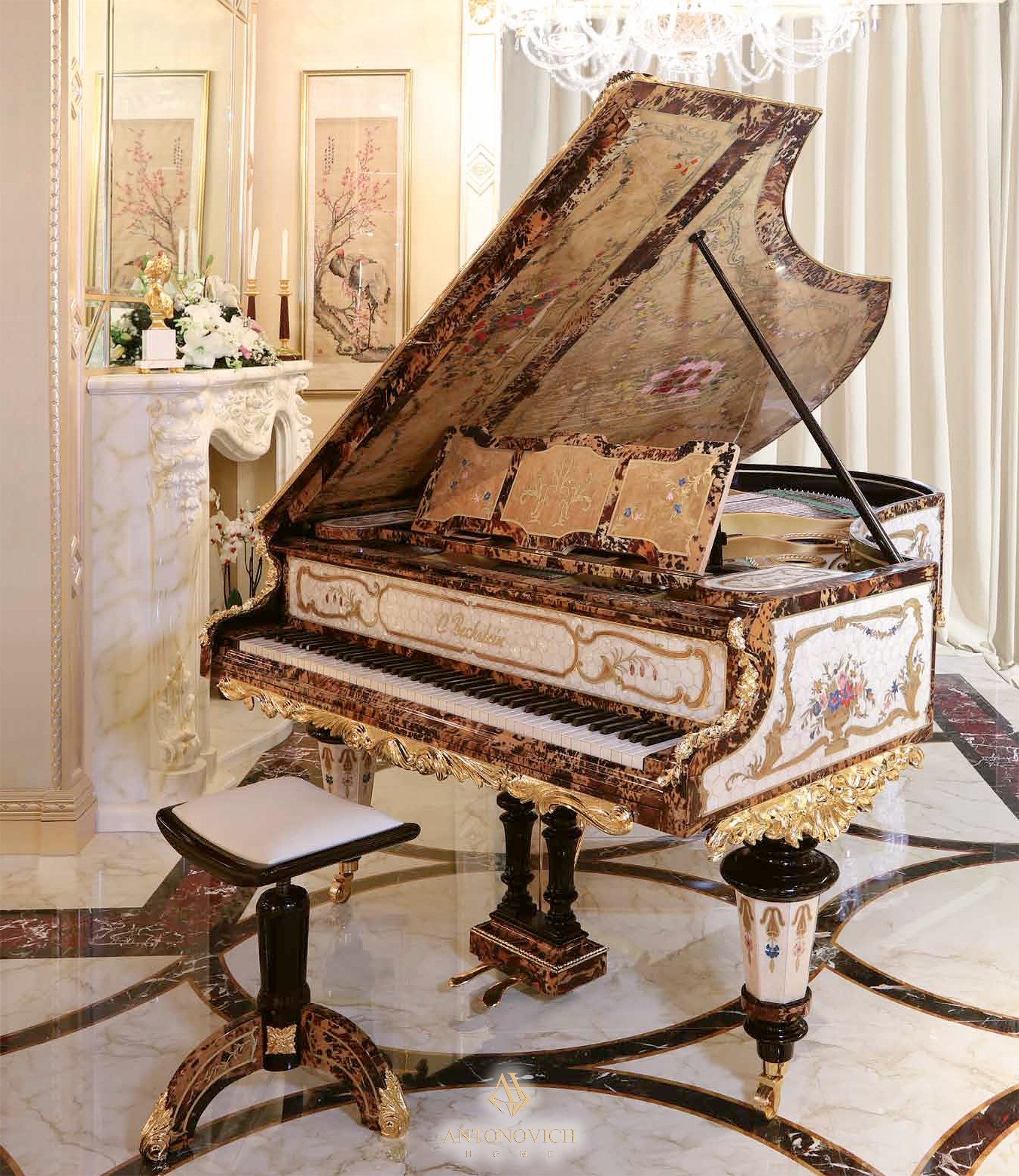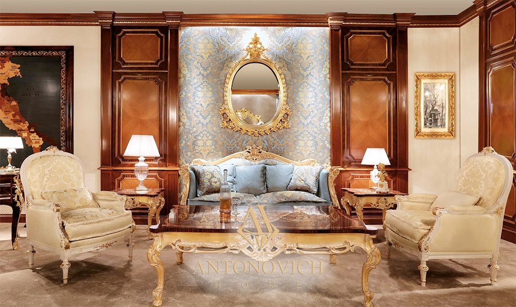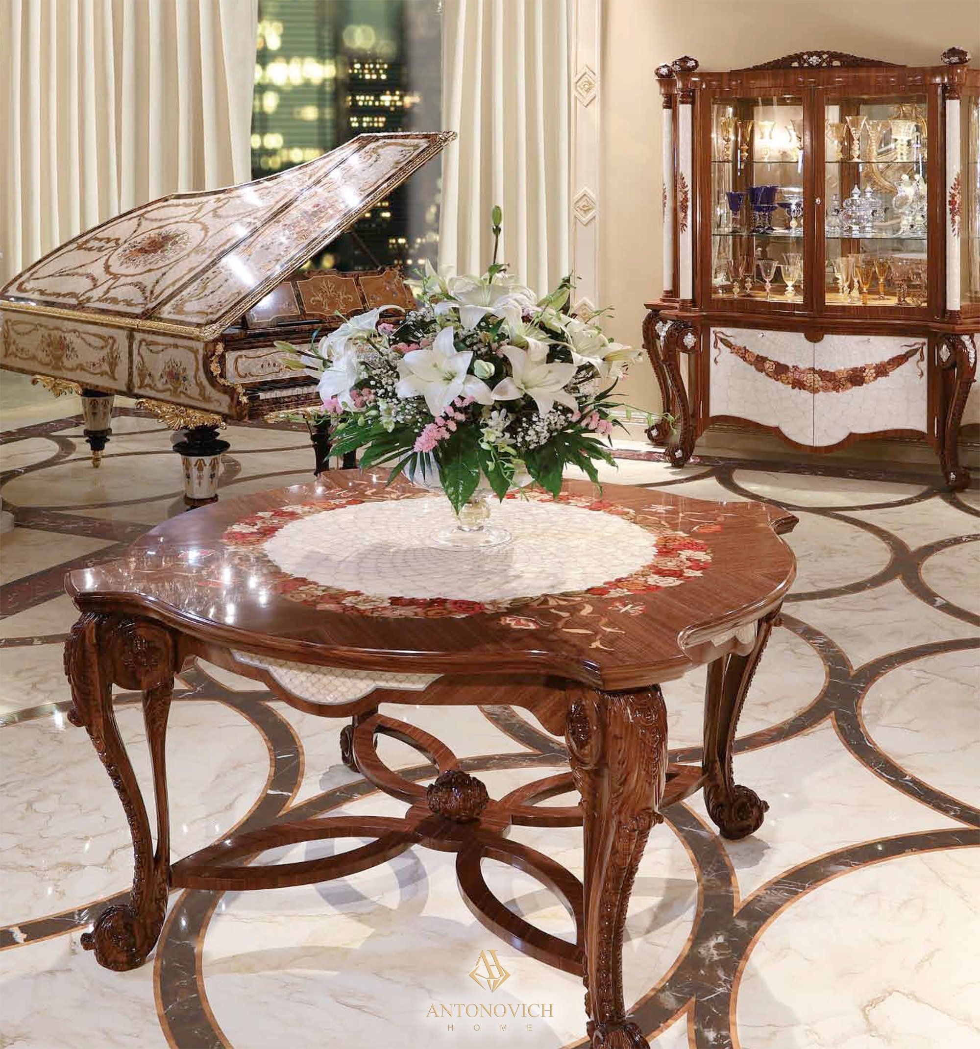 Классические и вневременные линии, сочетающиеся с перламутровыми и рельефными вставками, создают роскошные и стильные эффекты, где каждый предмет мебели сияет красотой.