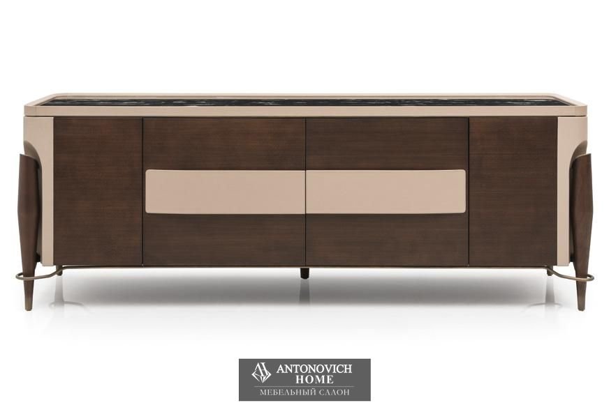 Низкий буфет с распашными дверцами – это одна из двух моделей коллекции. Столешница может быть деревянной или мраморной.