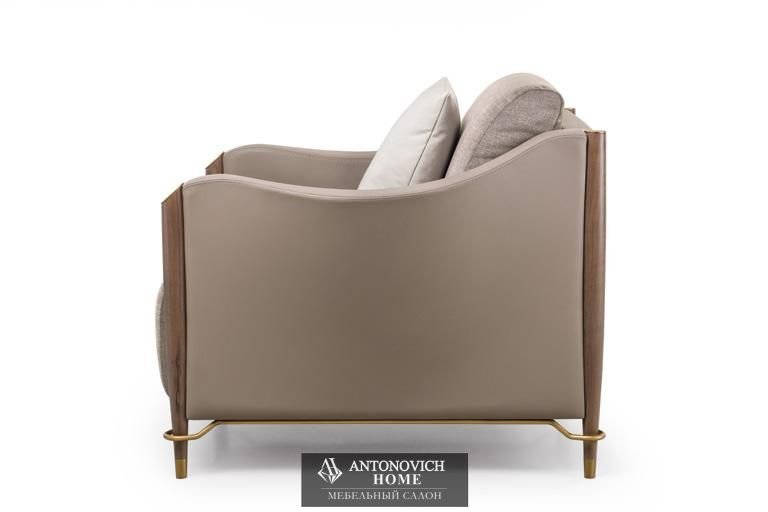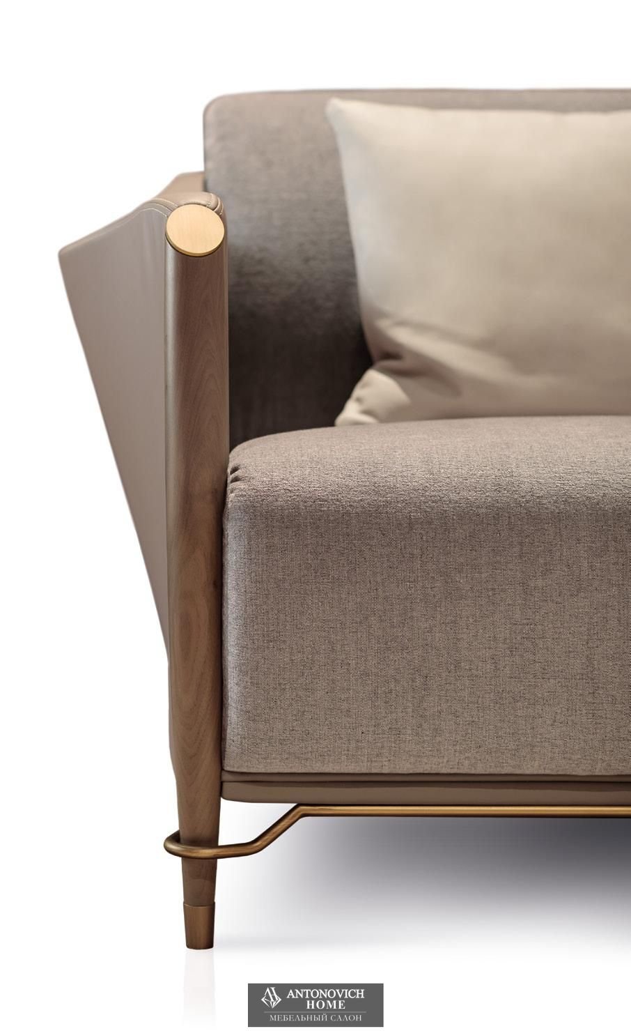 Дизайн диванов и кресел определён в большей степени деревянными ножками с округлым сечением, сужающимся книзу, которые рассекаются по диагонали металлическим элементом.