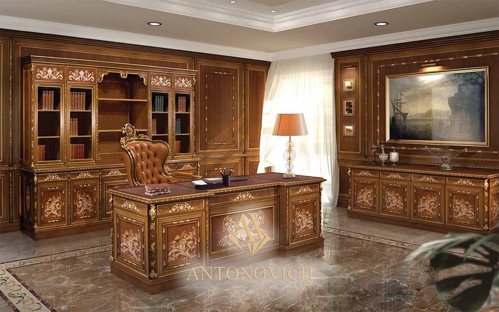 Кабинет Bazzi Interior Decoration — это роскошь в каждой детали, классика, существующая вне моды и возвращающая нас во времена дворцового великолепия.