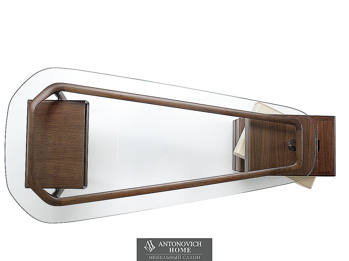 Письменный стол Omaggio фабрики Ceccotti Collezioni из массива американского ореха, ящик из фанеры (3 ящика из американского ореха / 1 поворотный ящик из клена), поднос из американского ореха, столешница из закаленного стекла толщиной 12 мм, сверхпрозрачная или дымчатая.