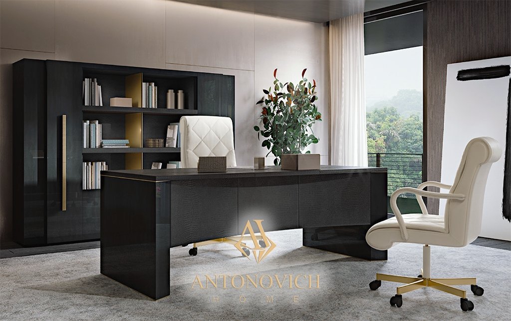 В состав коллекции входит письменный стол, отличающийся превосходной эргономичностью и многофункциональностью, офисное кресло, тумба, книжный шкаф, буфет.