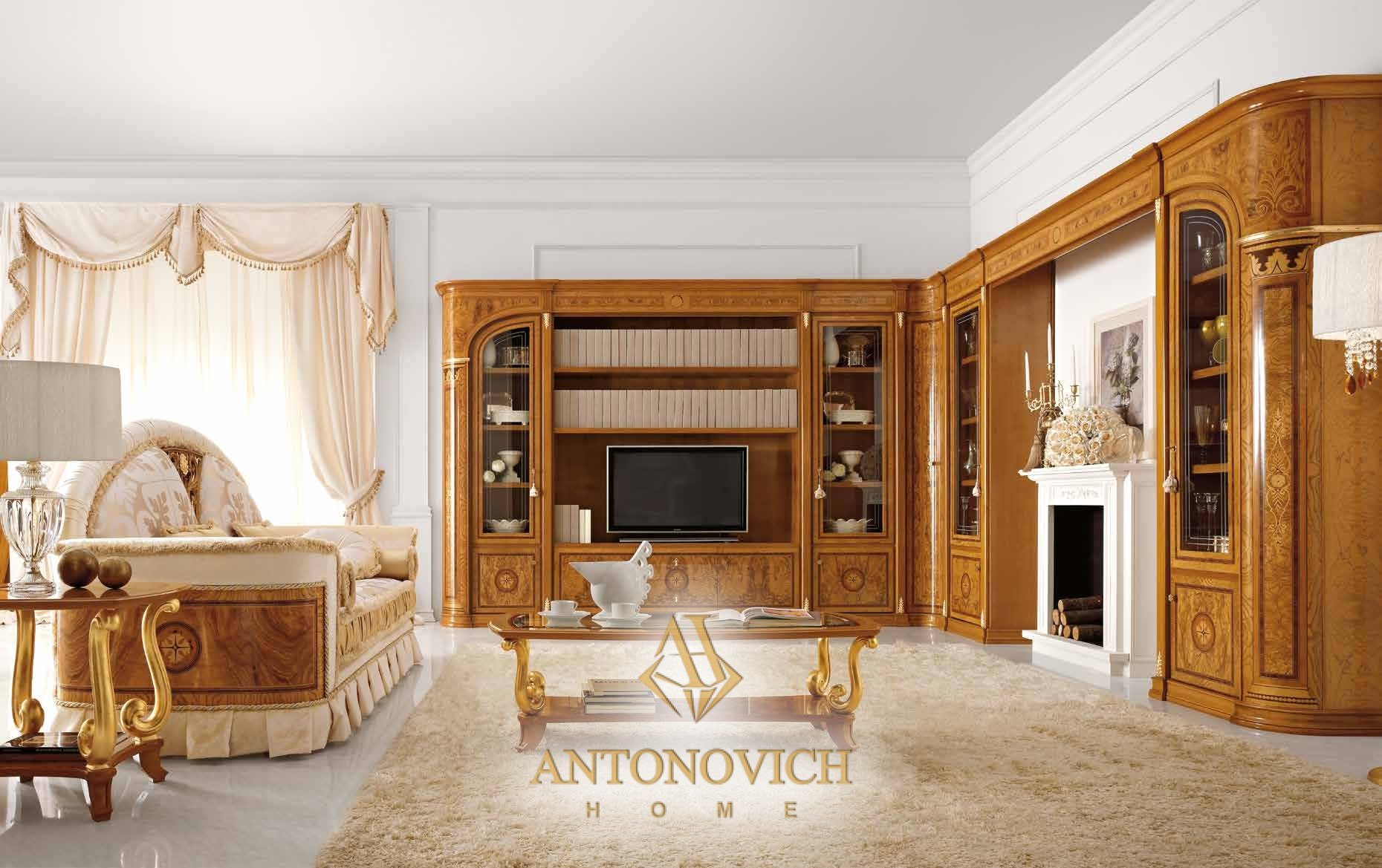 Мебель из натуральной древесины украшена дорогим декором ручной работы.