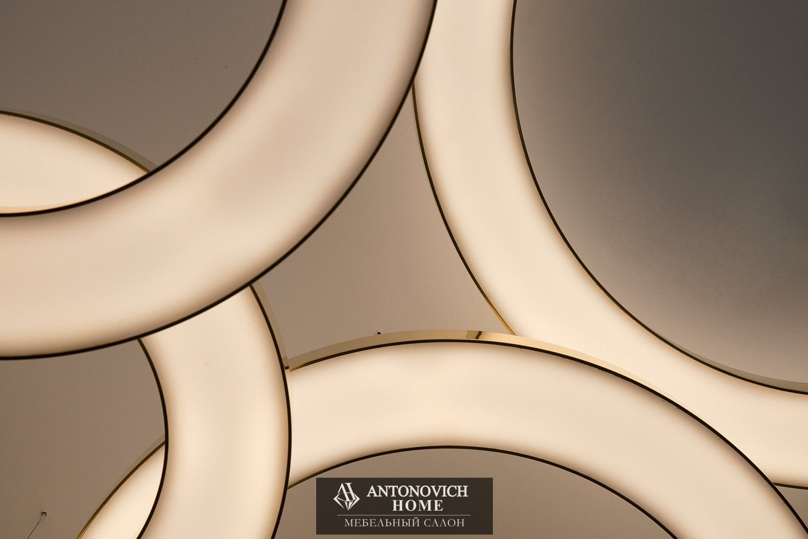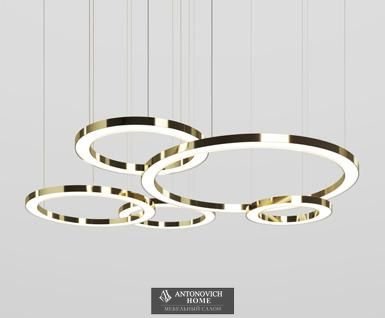 Доступны индивидуальные варианты, диаметр колец от 50 до 120 см. Встроенное светодиодное освещение. Доступны полированный и матовый металл или порошковое покрытие.