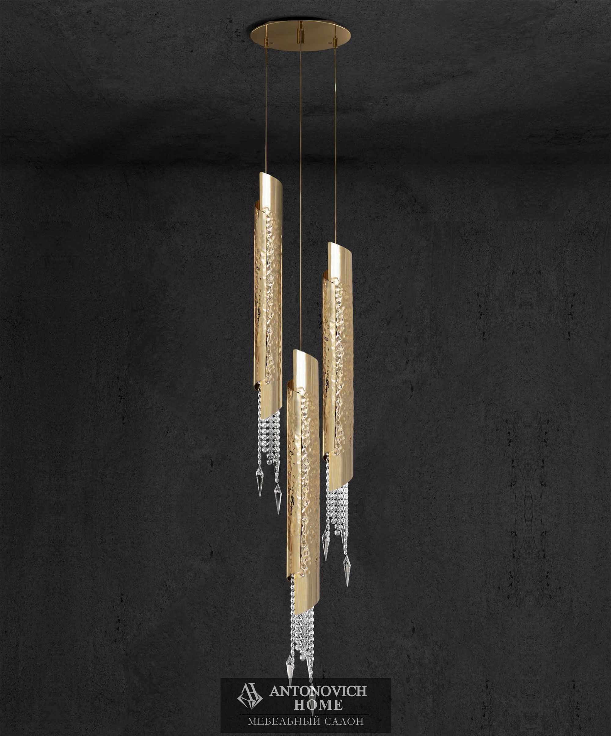 Позолоченные латунные трубки изготовлены опытными мастерами и украшены прозрачными кристаллами Сваровски.