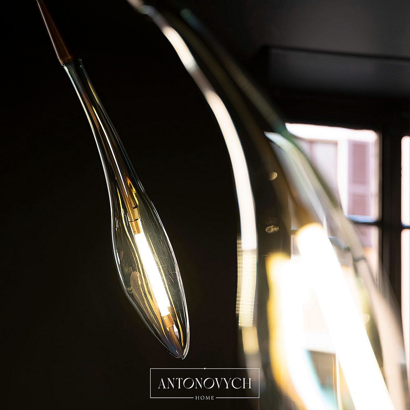 Подобно семенам клена, Maple, подвесной светильник, расширяет свои стебли в черной полированной латуни, прорастающие необычными и харизматичными органическими соцветиями в дутом стекле.