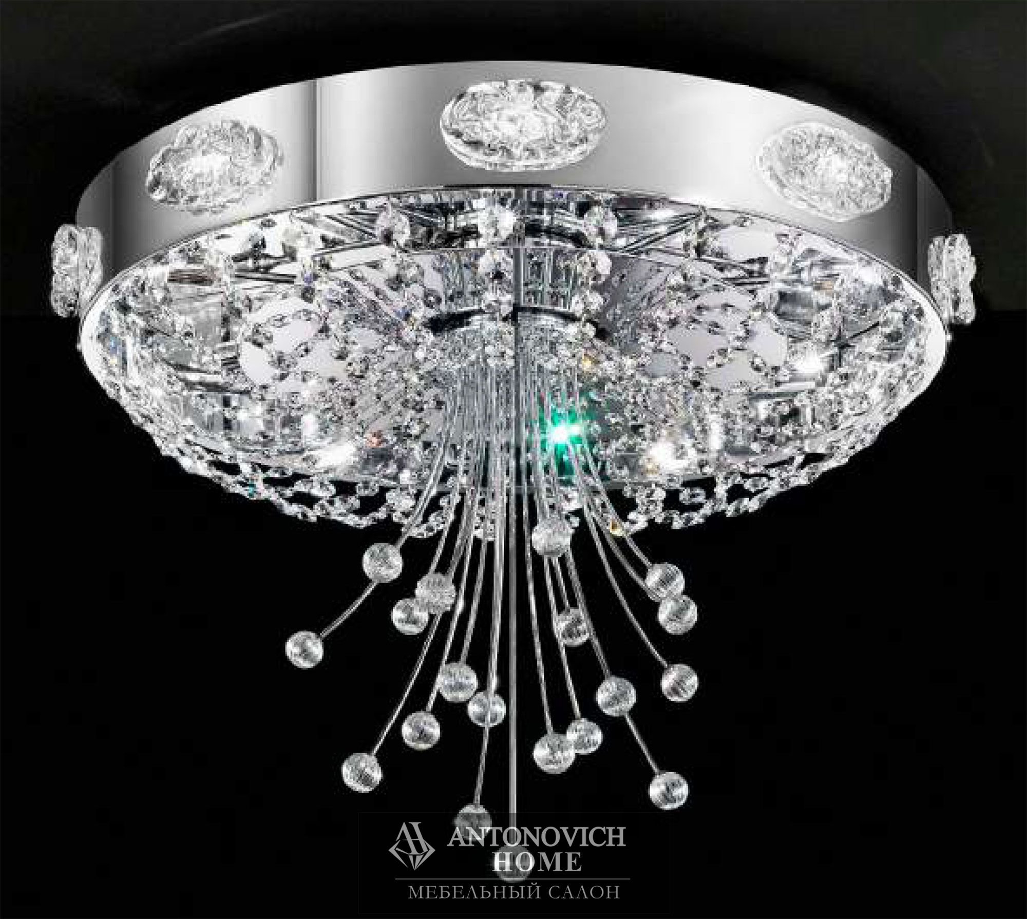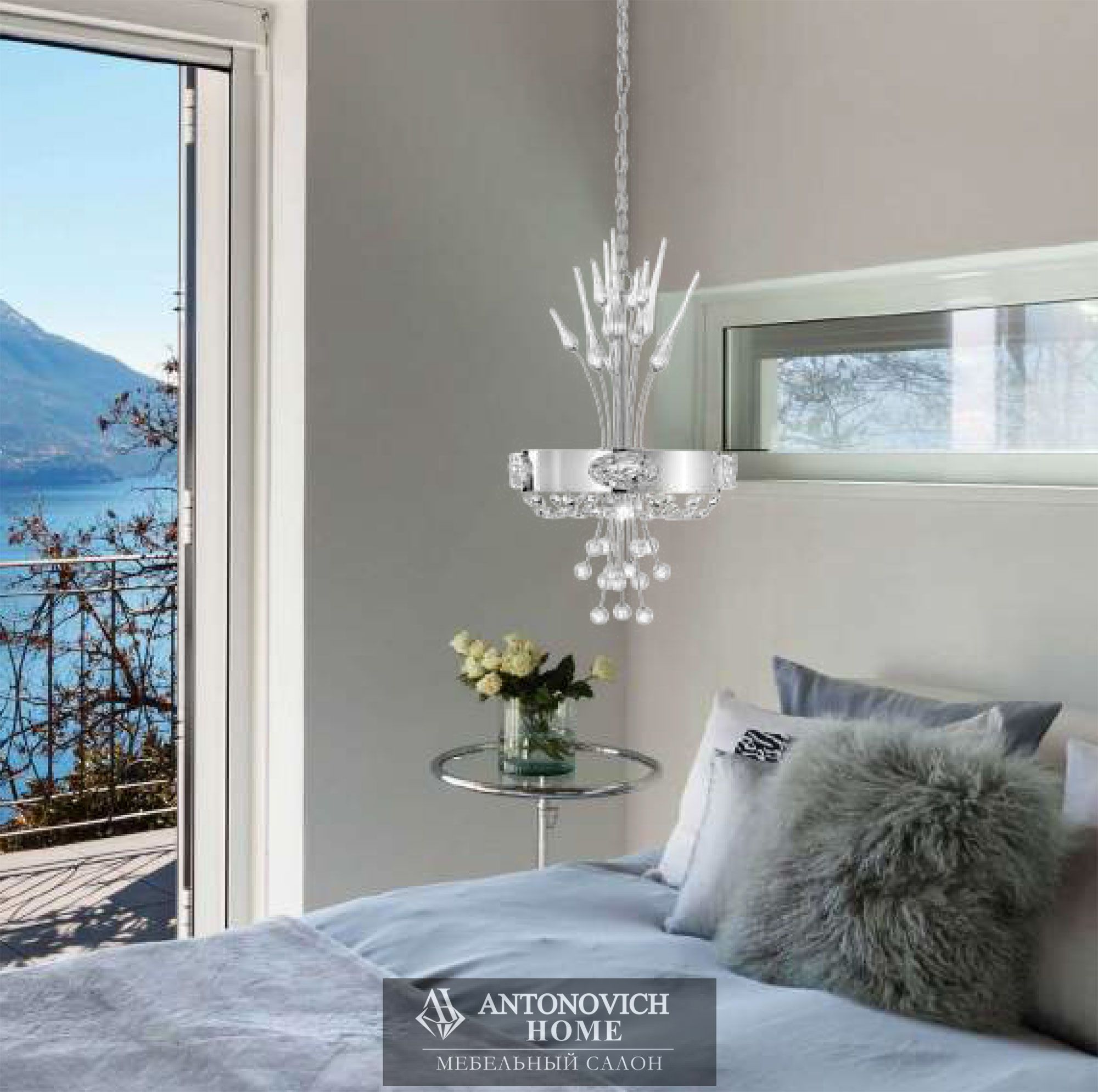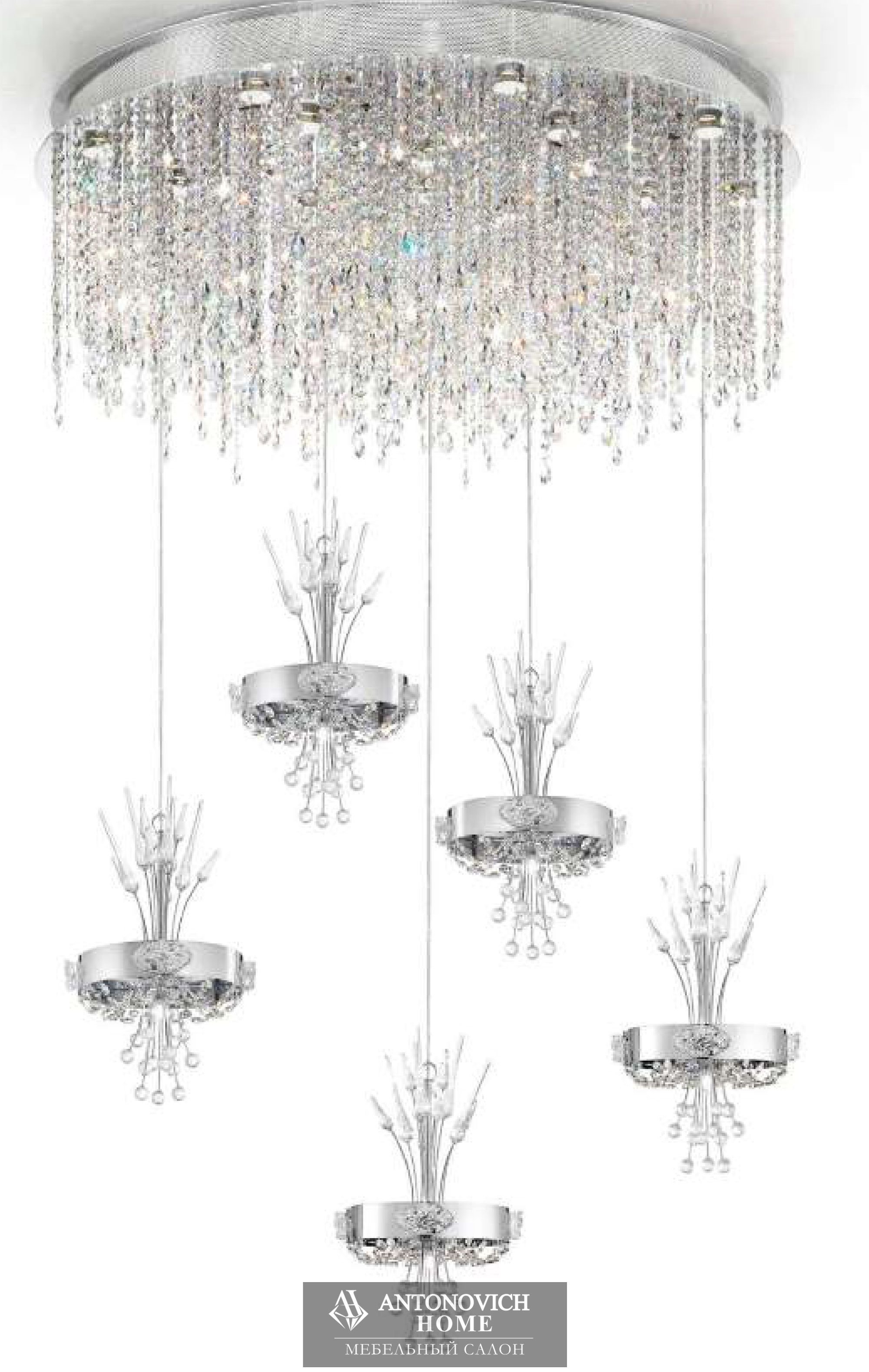 Металлический корпус доступен в отделке светлое золото или хром. Детали из прозрачного муранского стекла.