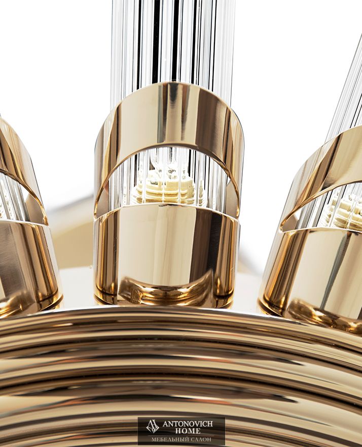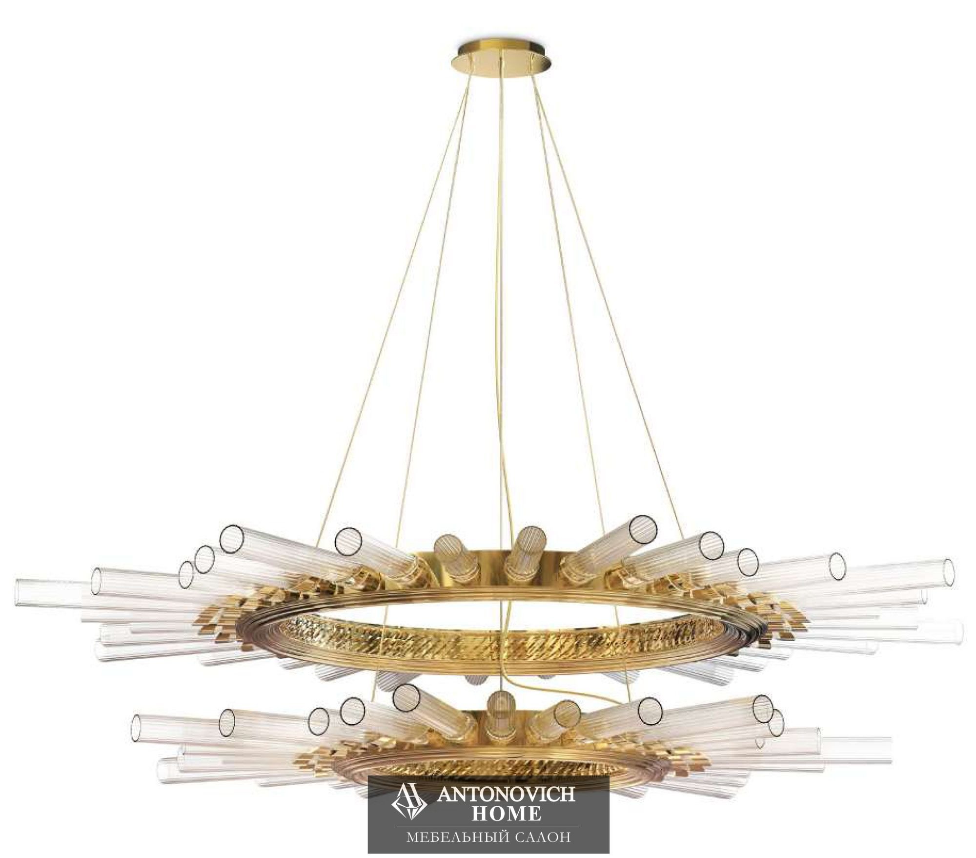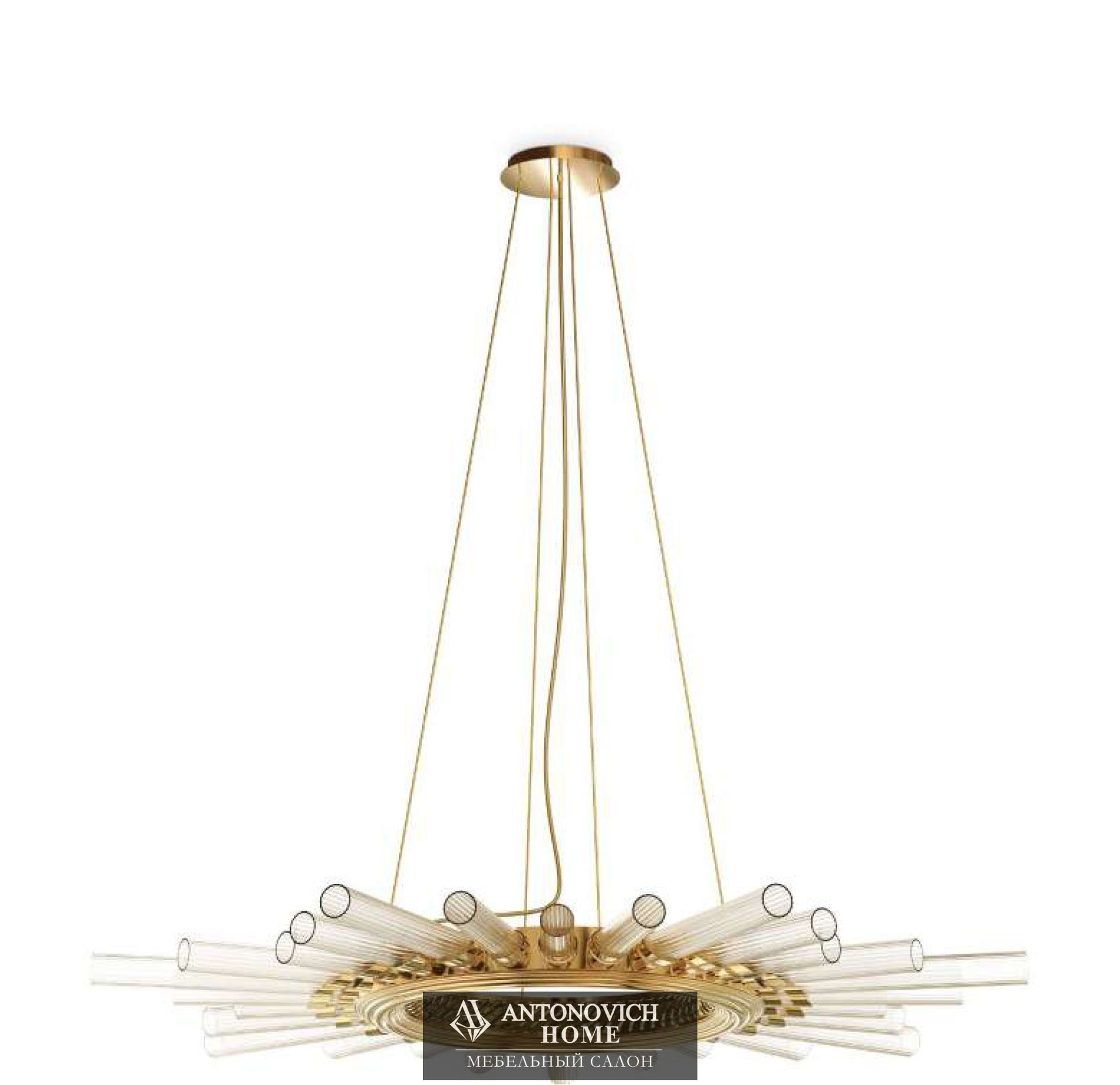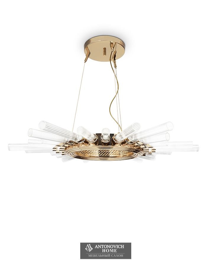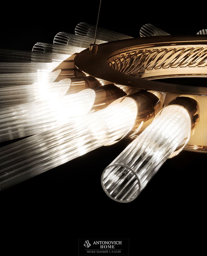 Подвес Majestic имеет форму позолоченного медного круга. Сделанный из самого лучшего материала, каждый ребристый хрустальный стеклянный цилиндр создает атмосферу неотразимой экспозиции и эксклюзивности.