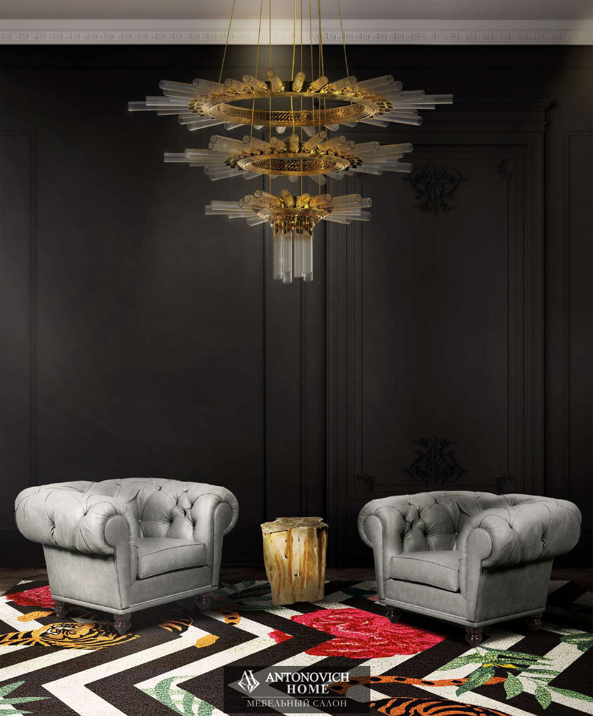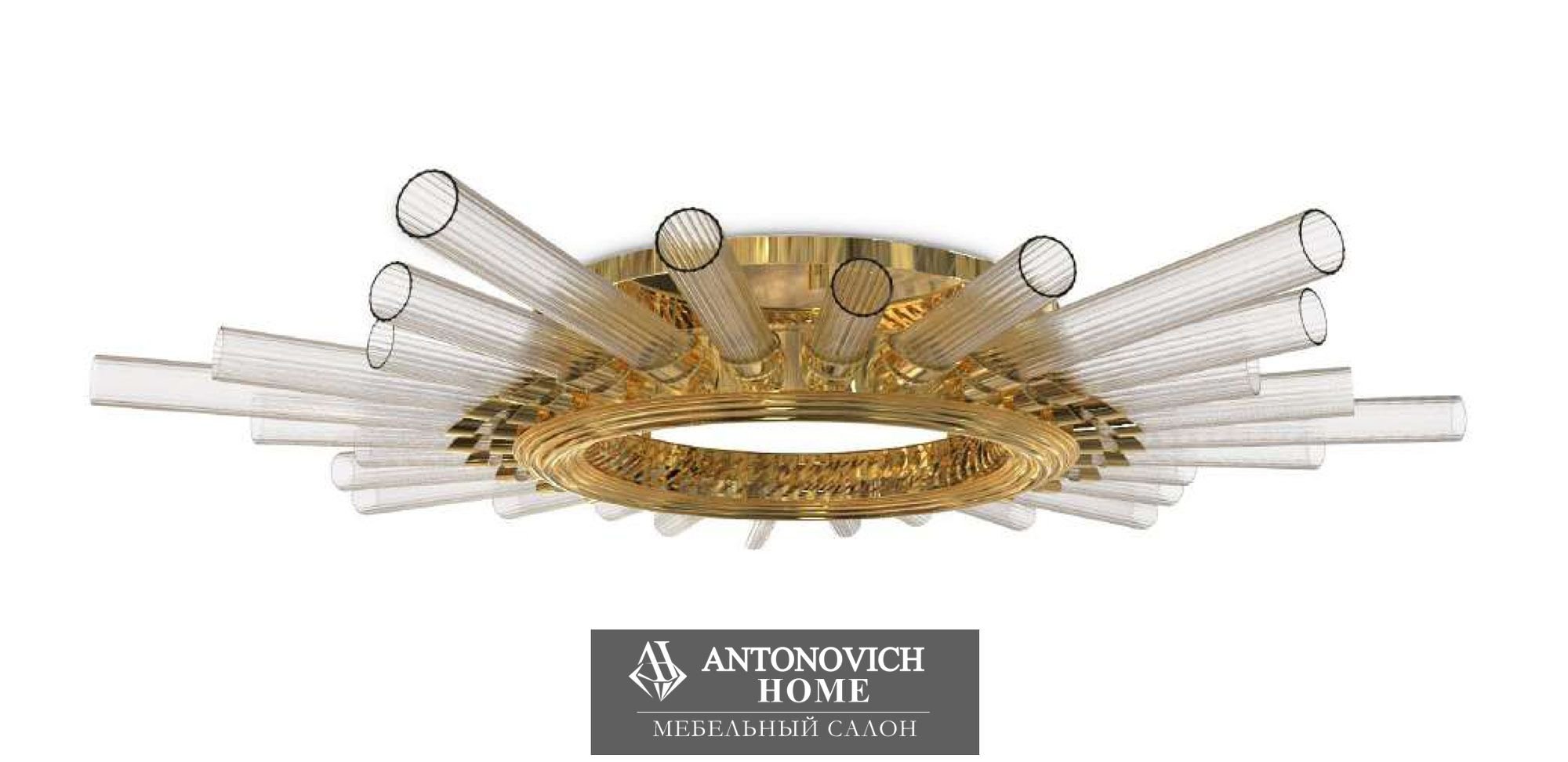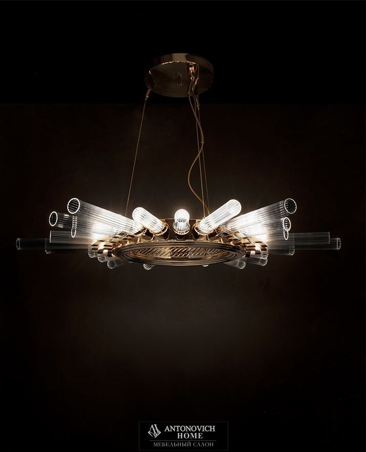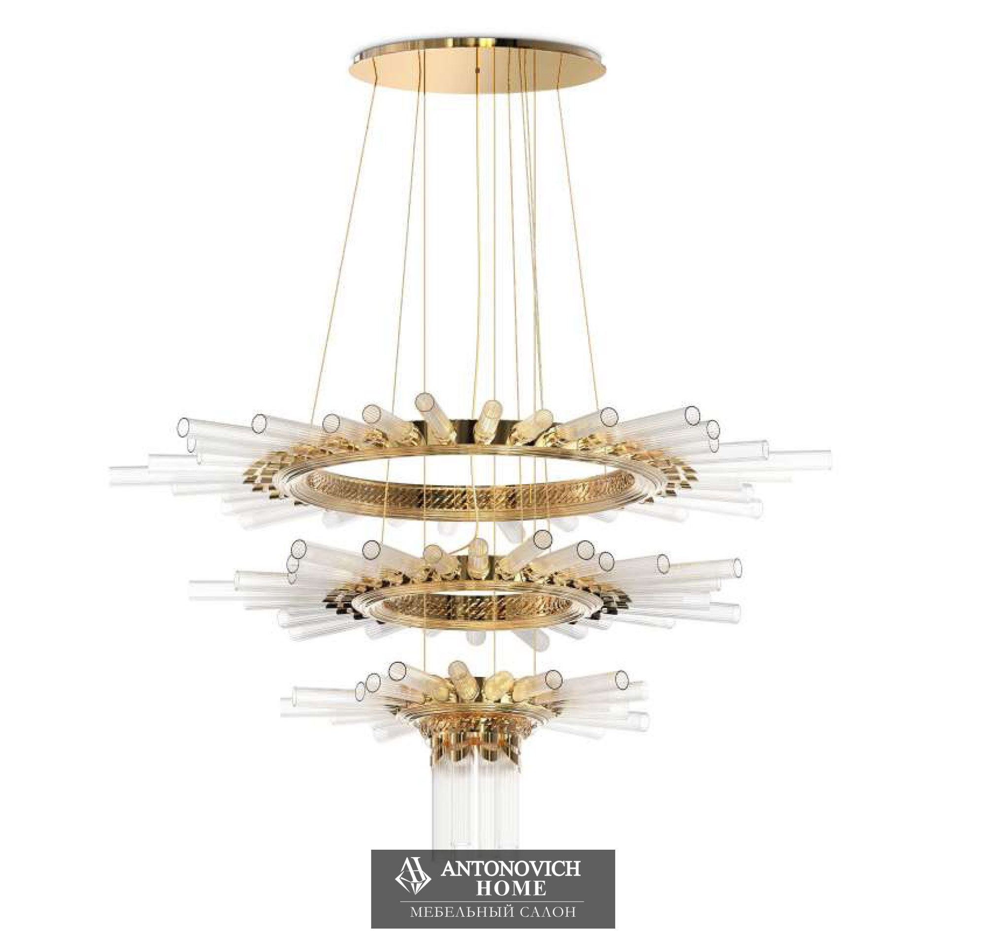 Подвес Majestic имеет форму позолоченного медного круга. Сделанный из самого лучшего материала, каждый ребристый хрустальный стеклянный цилиндр создает атмосферу неотразимой экспозиции и эксклюзивности.