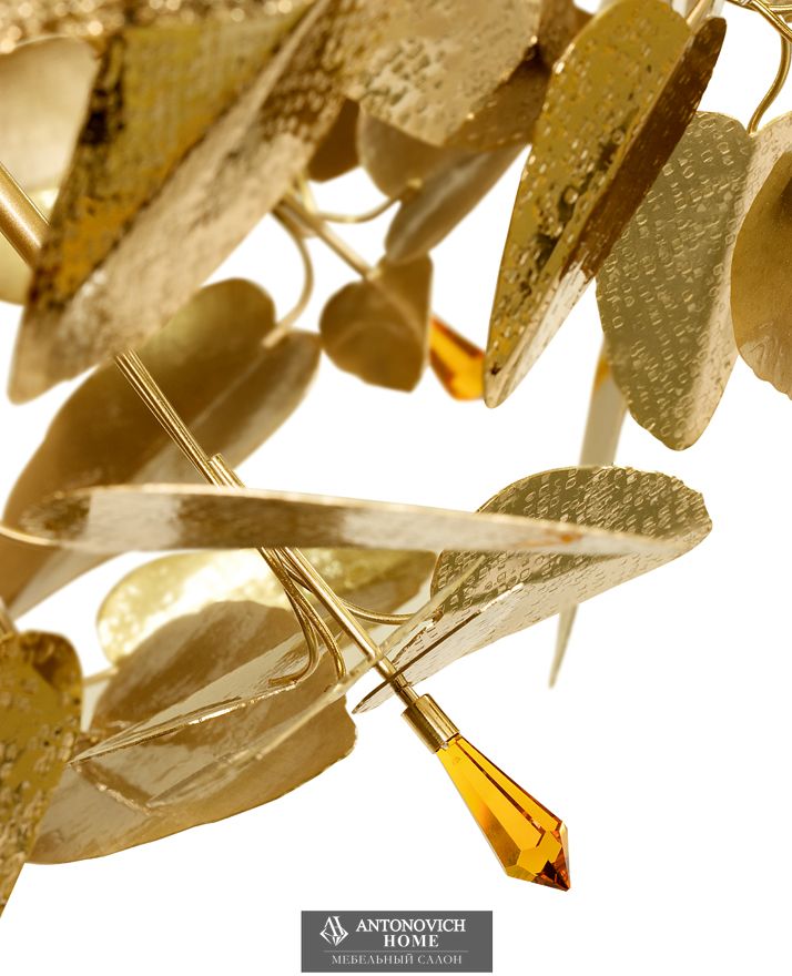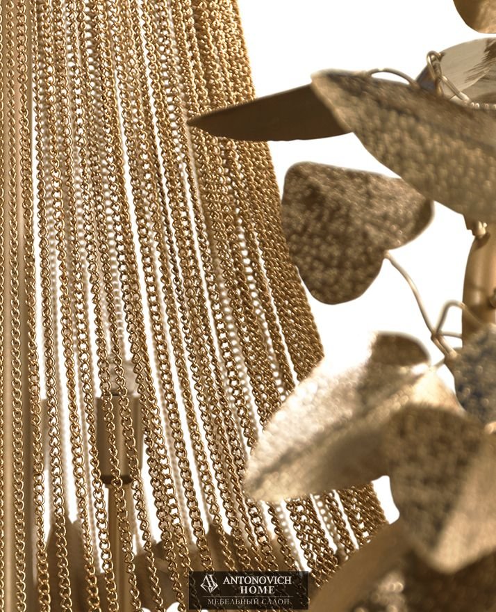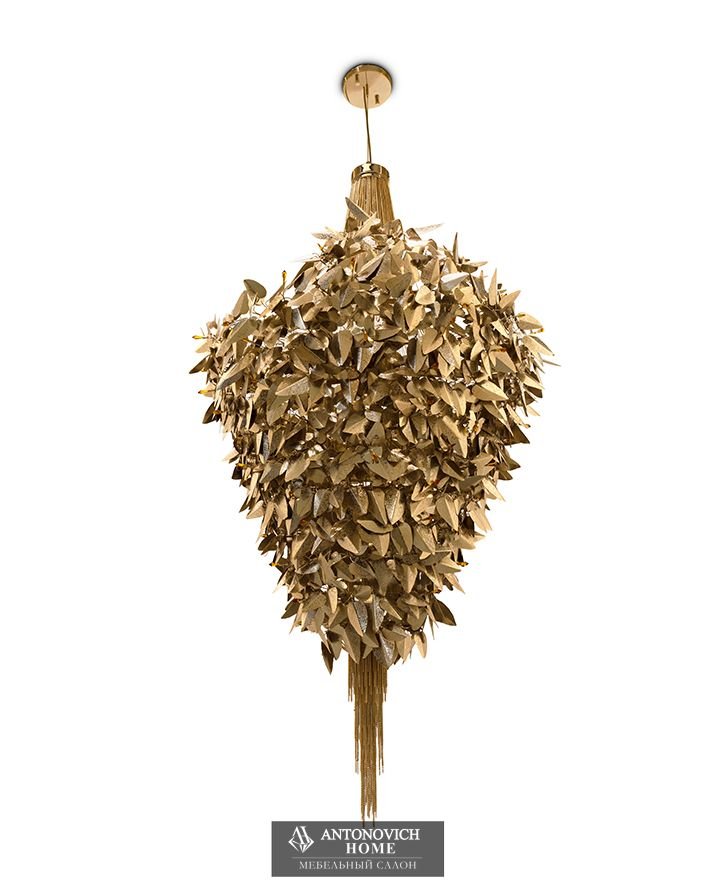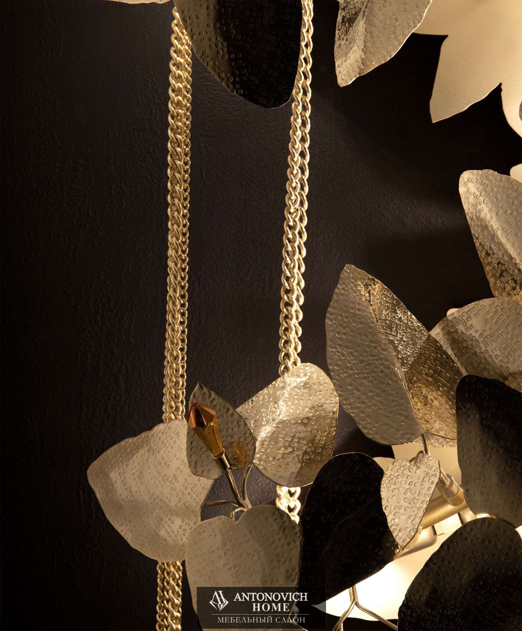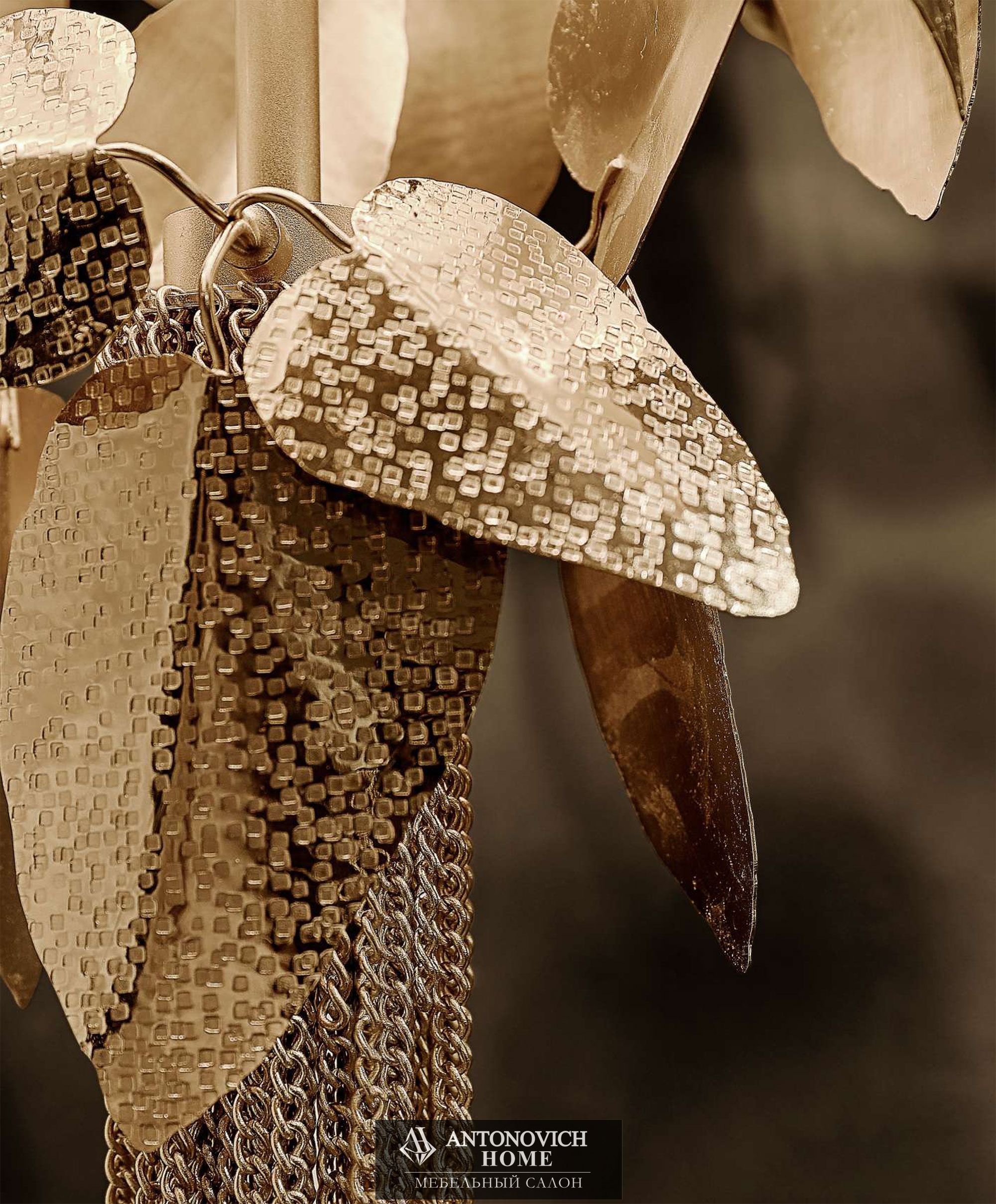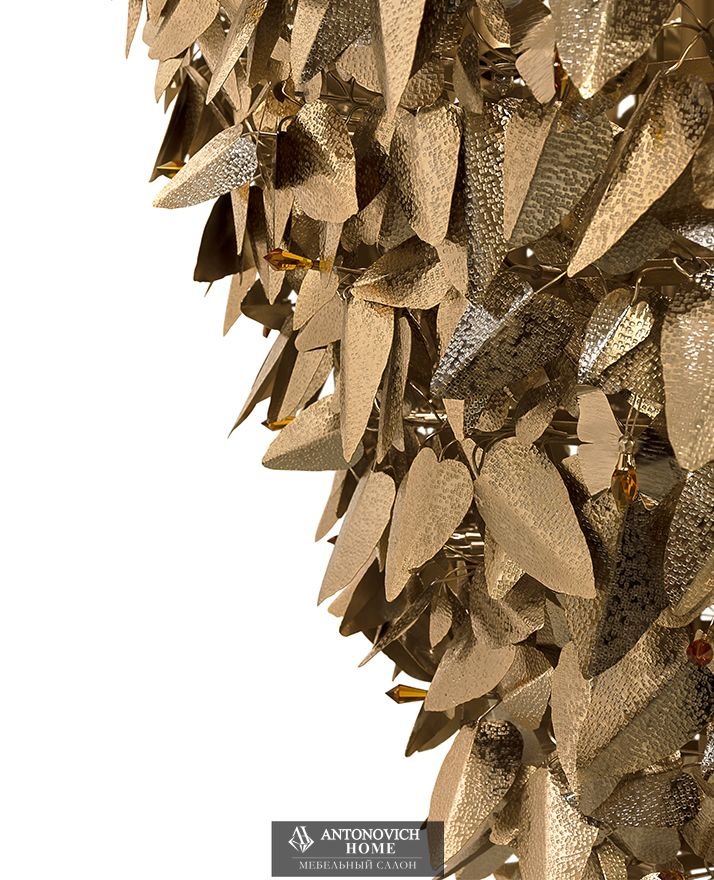 Подобно дикой красоте природы, этот шедевр вызывает мощное воплощение возвышенного. Он идеально подходит для использования в качестве одного предмета или в гармонии с более чем одним элементом в одной области. Его пышная презентация черпала вдохновение из творений Александра МакКуина, и на каждом листе кроется его индивидуальность в отделке из латуни и позолоты, что дает набор ритмичных, светящихся ветвей, которые заканчиваются налетом красивых кристаллов Swarovski.