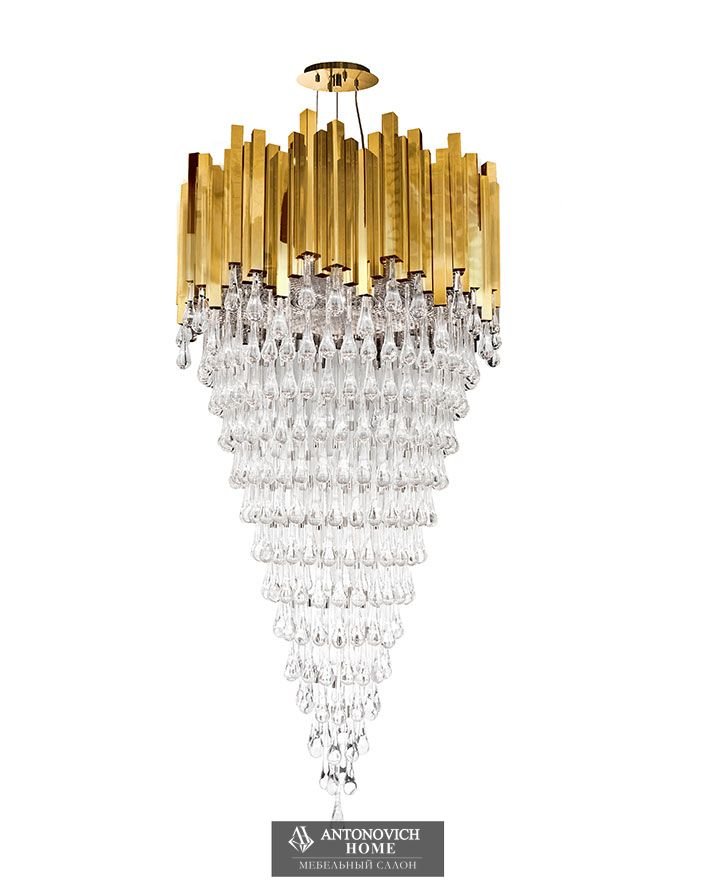 Эта большая золотая хрустальная люстра была создана для того, чтобы передать линии каскада. Сверху соединенные позолоченные латунные конструкции служат основной основой для роскошного хрустального стеклянного шедевра, размещенного снизу. Каждая из этих возвышенных стеклянных капель была разработана с большим вниманием к деталям и традиционным техникам мастерства. Идеальная роскошная люстра для изысканной атмосферы.