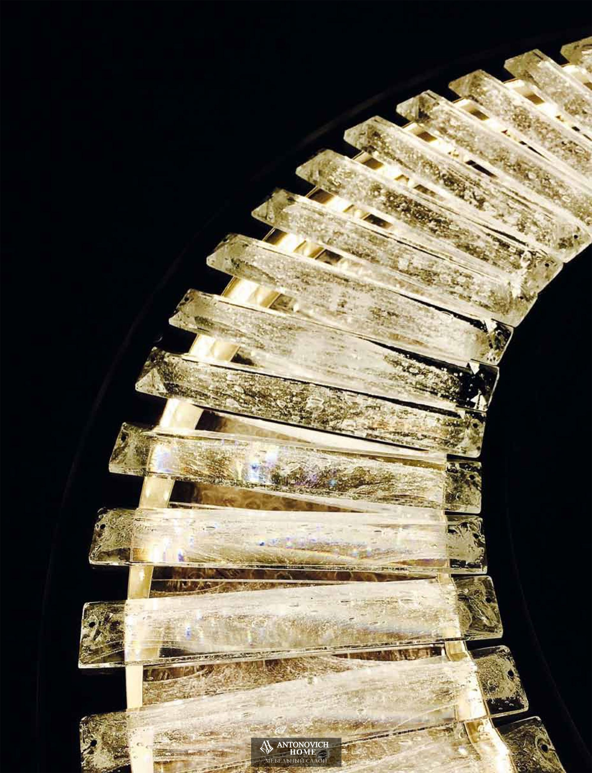 Дизайнерская фантазия может рассчитывать на размеры кристаллов исключительной красоты. Именно КРИСТАЛЛ ВОДЫ, который освещается непрямым светом светодиодов, создает уникальный эффект. Эффект КРИСТАЛЛА ВОДЫ возникает в результате экспериментов в Marchetti Lab. Специальный химический процесс, который удерживает воду в кристалле, который продувается азотом, кристаллизуется, создавая удивительные эффекты.
