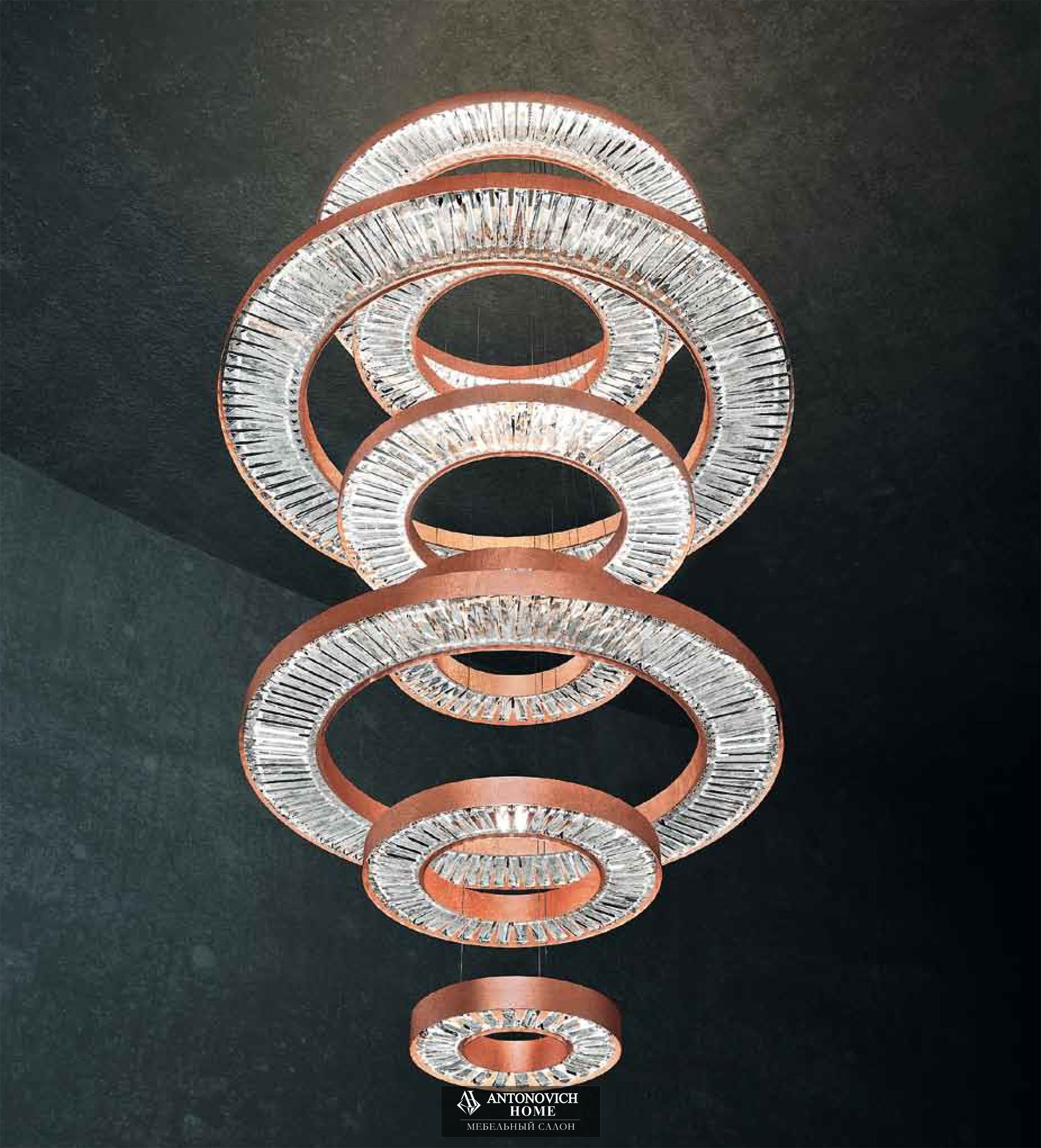 Коллекция светильников Canopus — кольца из кованой стали разных размеров, выполненные по индивидуальному заказу как платье высокой моды.