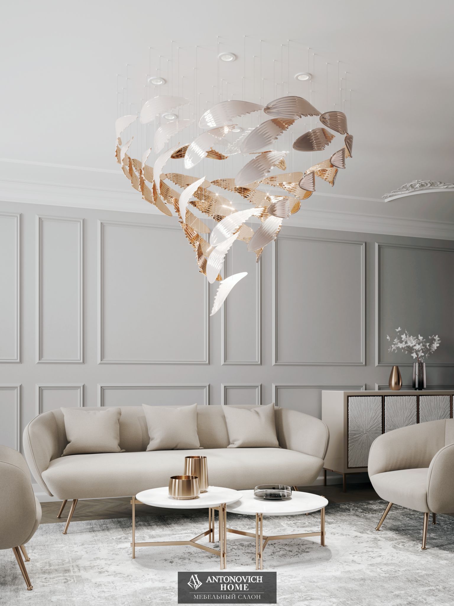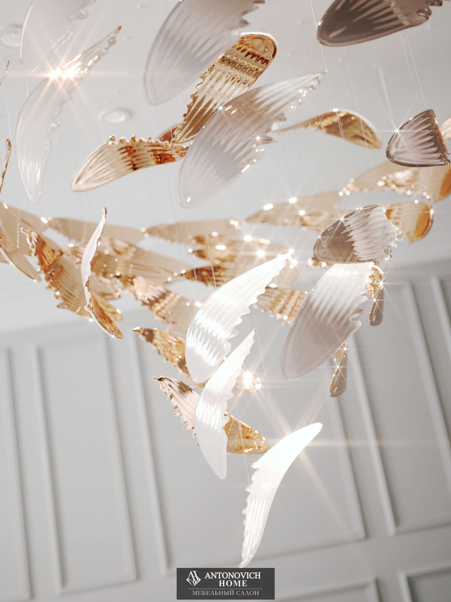 Как следует из названия, название Sans Souci люстры Wings, созданной вручную, было заимствовано из различных типов птичьих крыльев. Универсальность этих продуктов заключается в их групповых кластерах. При соединении двух крыльев становится птицей, при присоединении большего количества крыльев — стаей птиц. Расправленные крылья обеспечивают безопасность под укрытием. Эта нежная коллекция защитит вас и принесет удачу любому интерьеру.