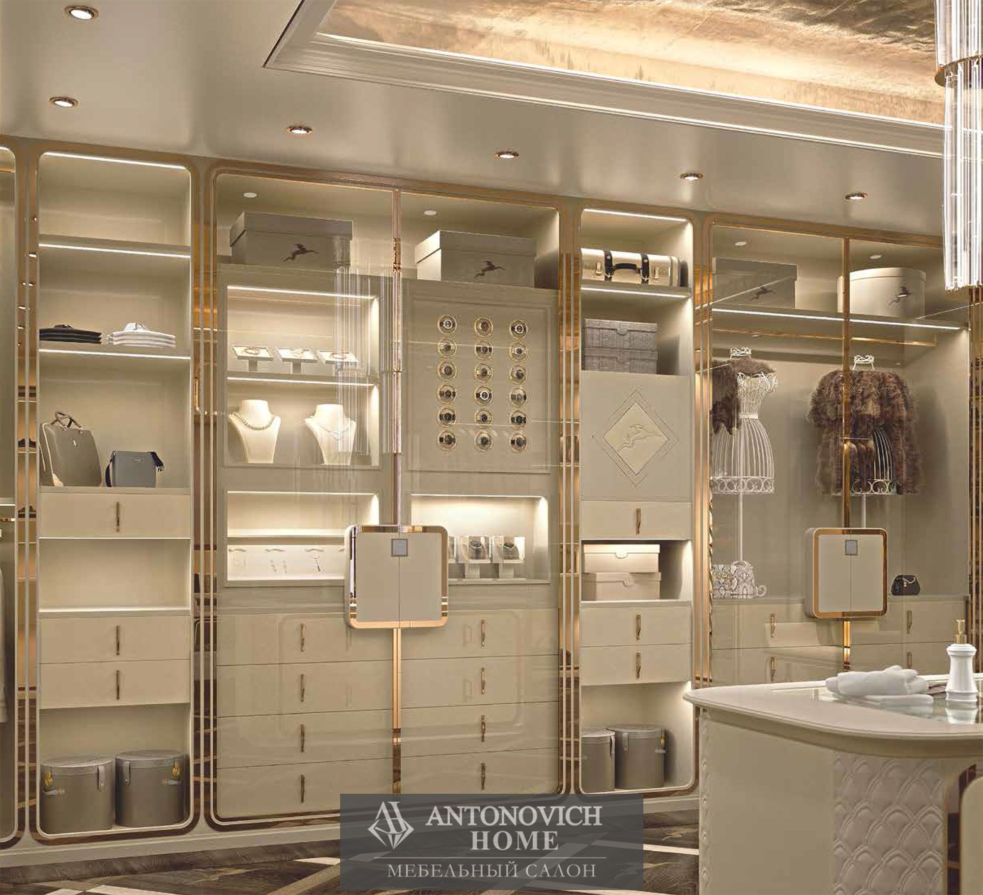 От платьев до часов, от драгоценных камней до галстуков и бабочек, от клатчей до обуви класса люкс, элегантная консоль для макияжа, где дамы обожают проводить время.