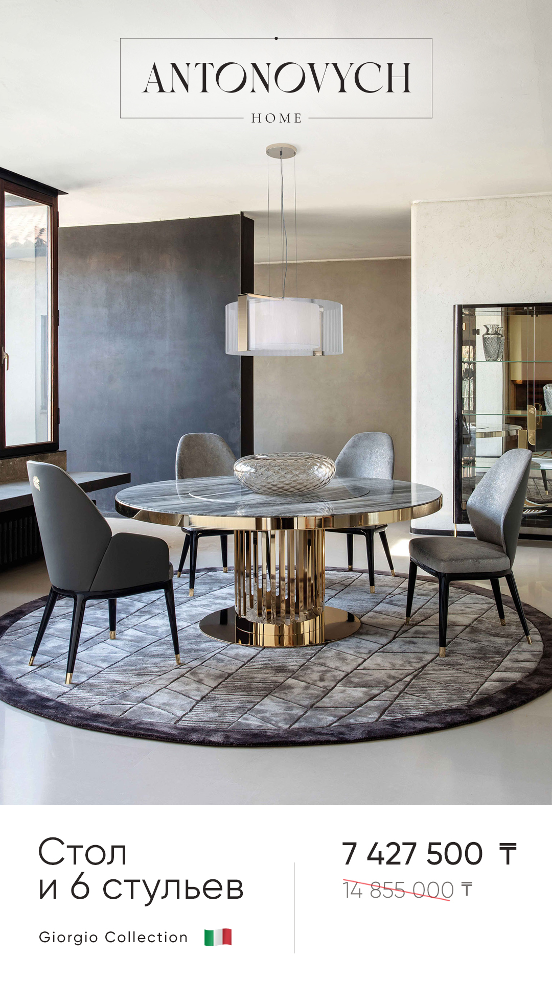 - Столовая группа: круглый стол и 6 стульев