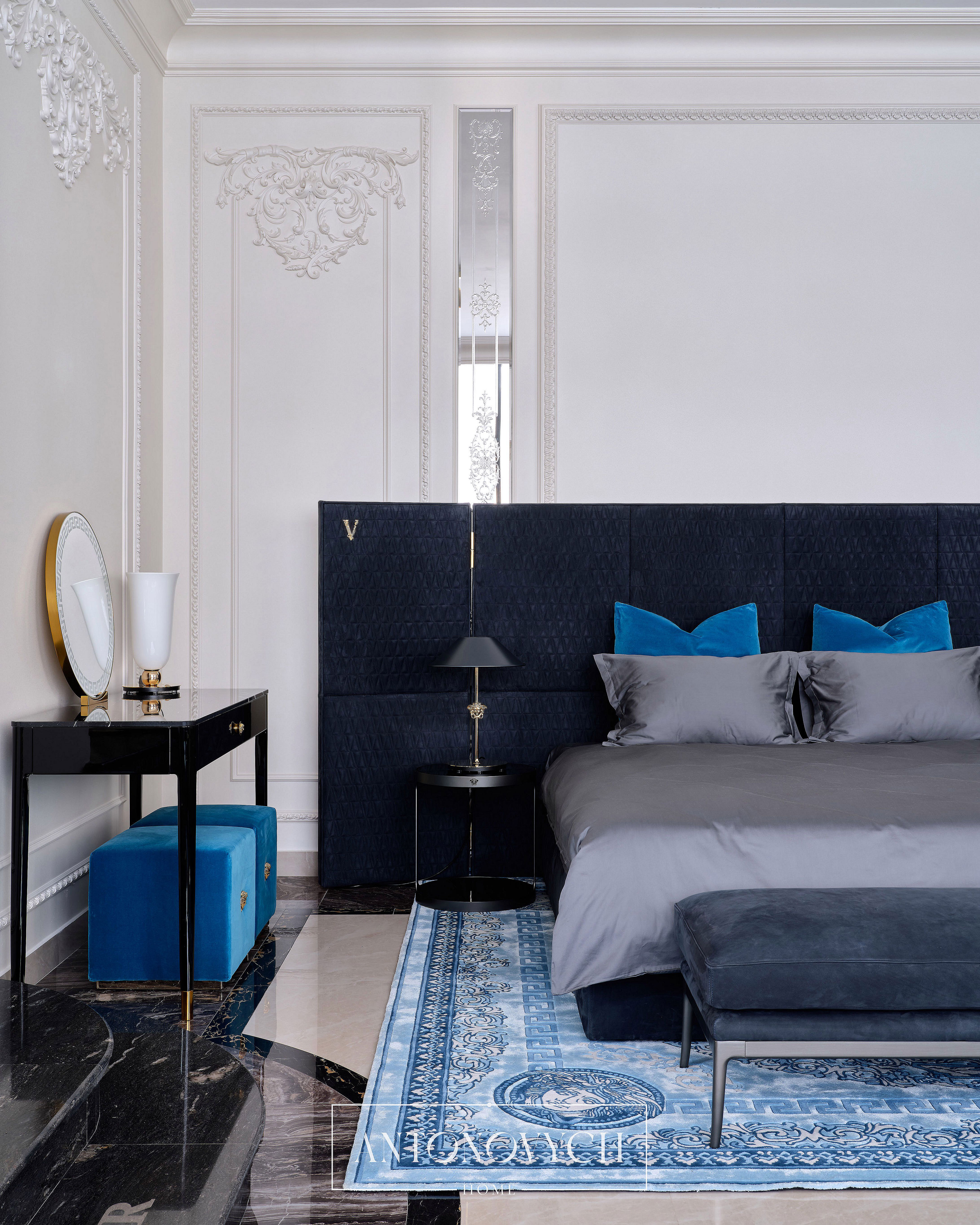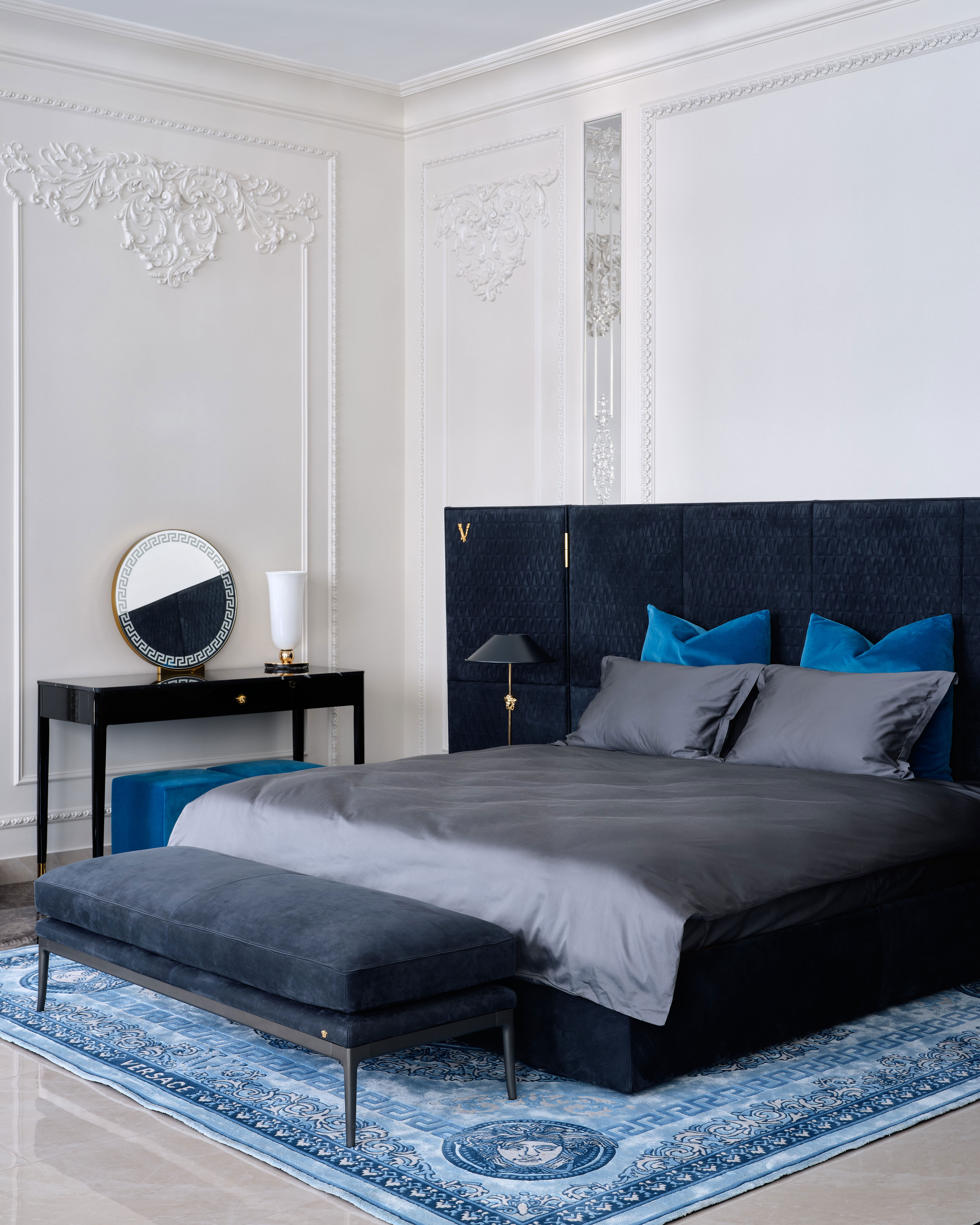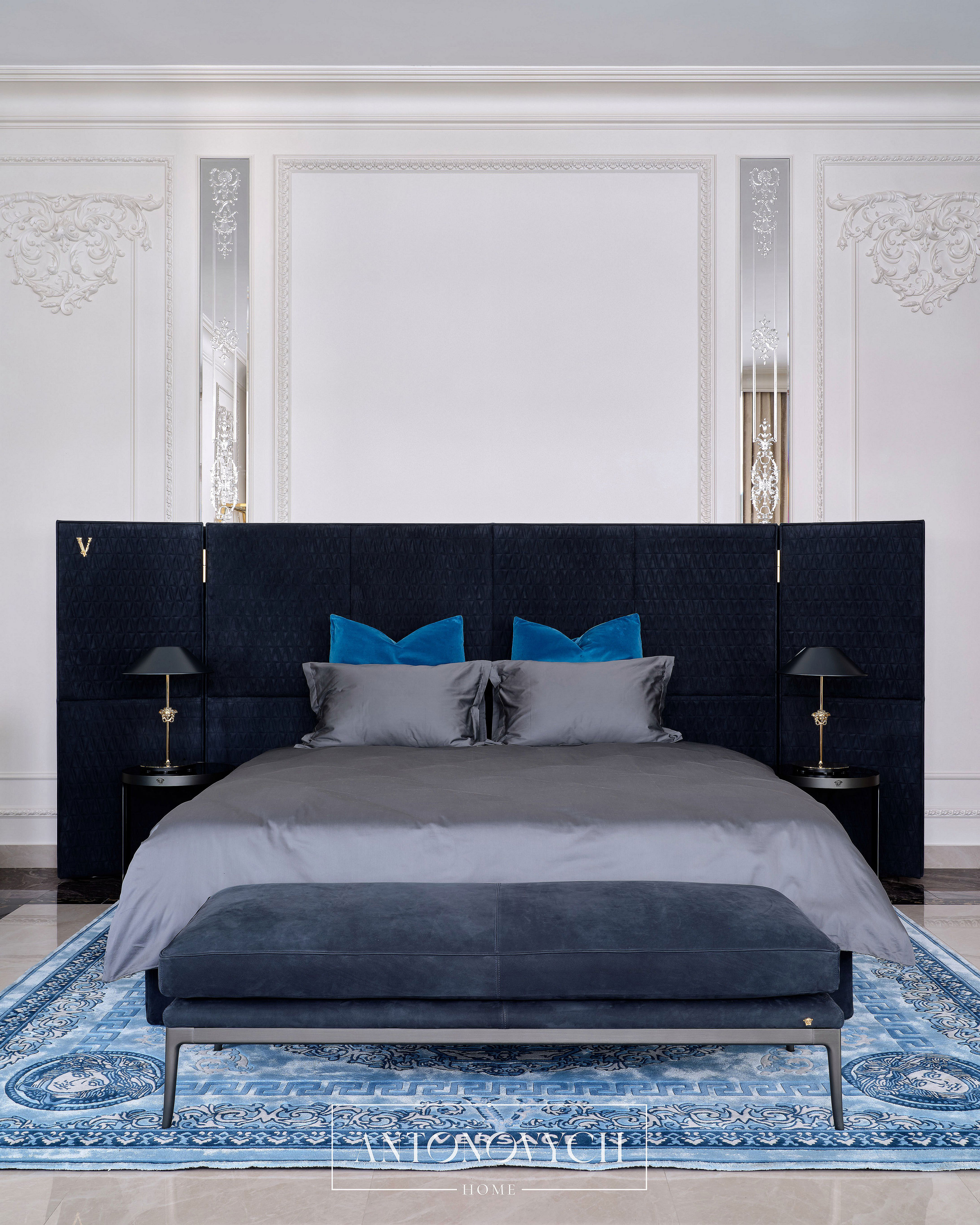 - Versace Home кровать V-king, прикроватная скамья Stiletto