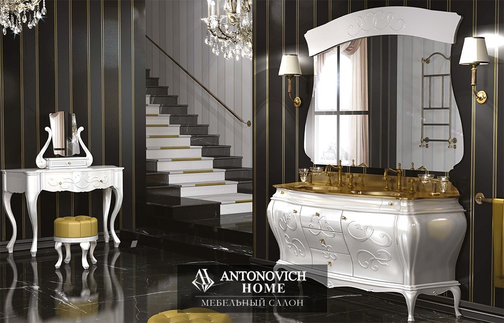 Линейка MyLuxury вдохновлена венецианским барокко. Ей свойственна отделка с налетом античности, эффектное патинирование и состаривание, дорогие орнаменты и изящные вензеля. Изогнутые ножки, пышные округлые формы тумб, шкафов-пеналов и консолей демонстрируют дуэт женственности и роскоши.