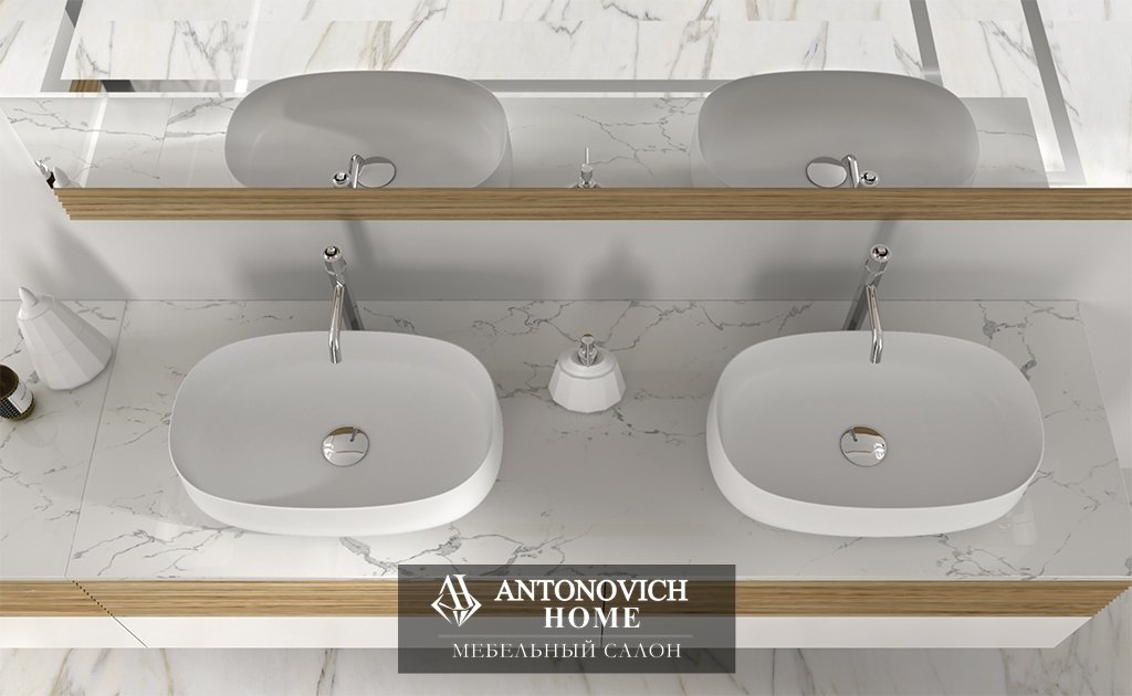 | Тумба в отделке Laccato, фасад ящиков крашенный в дереве Rovere (Дуб). Столешница в мраморе Botticino с керамическими раковинами | Д 188 Ш 54 В 42 |