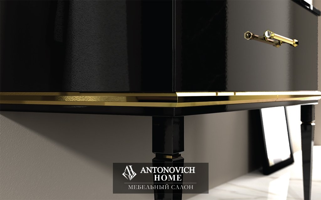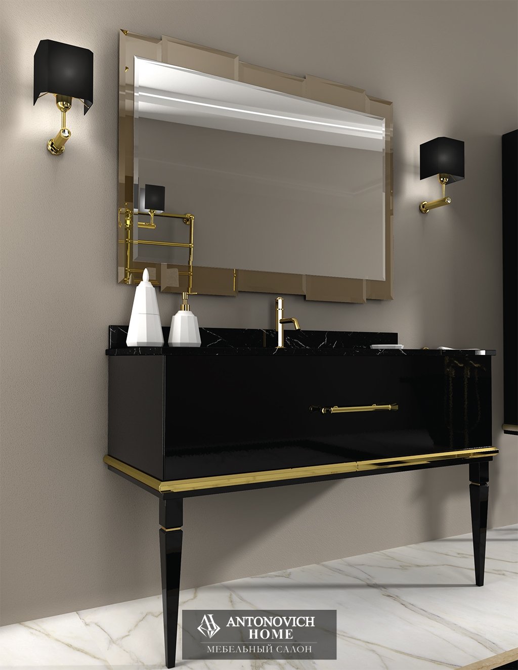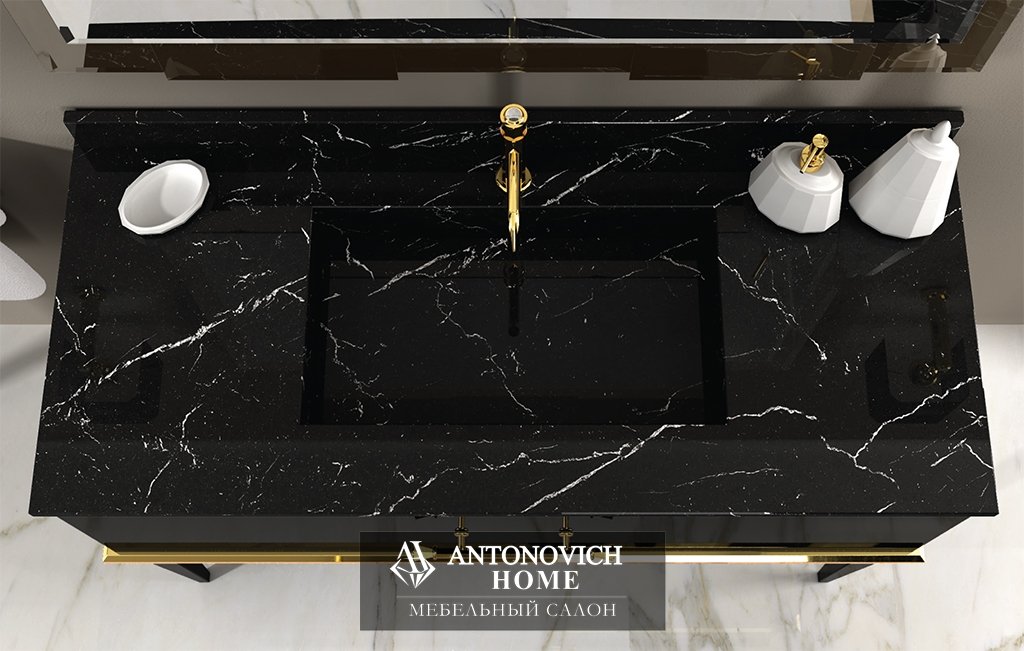 Тумба в отделке Brillante. Латунный ремешок, сечение Ottagonale, цвет Золото. Cтолешница и раковина в мраморе Nero Marquinia | Д 128 Ш 56 В 83 |