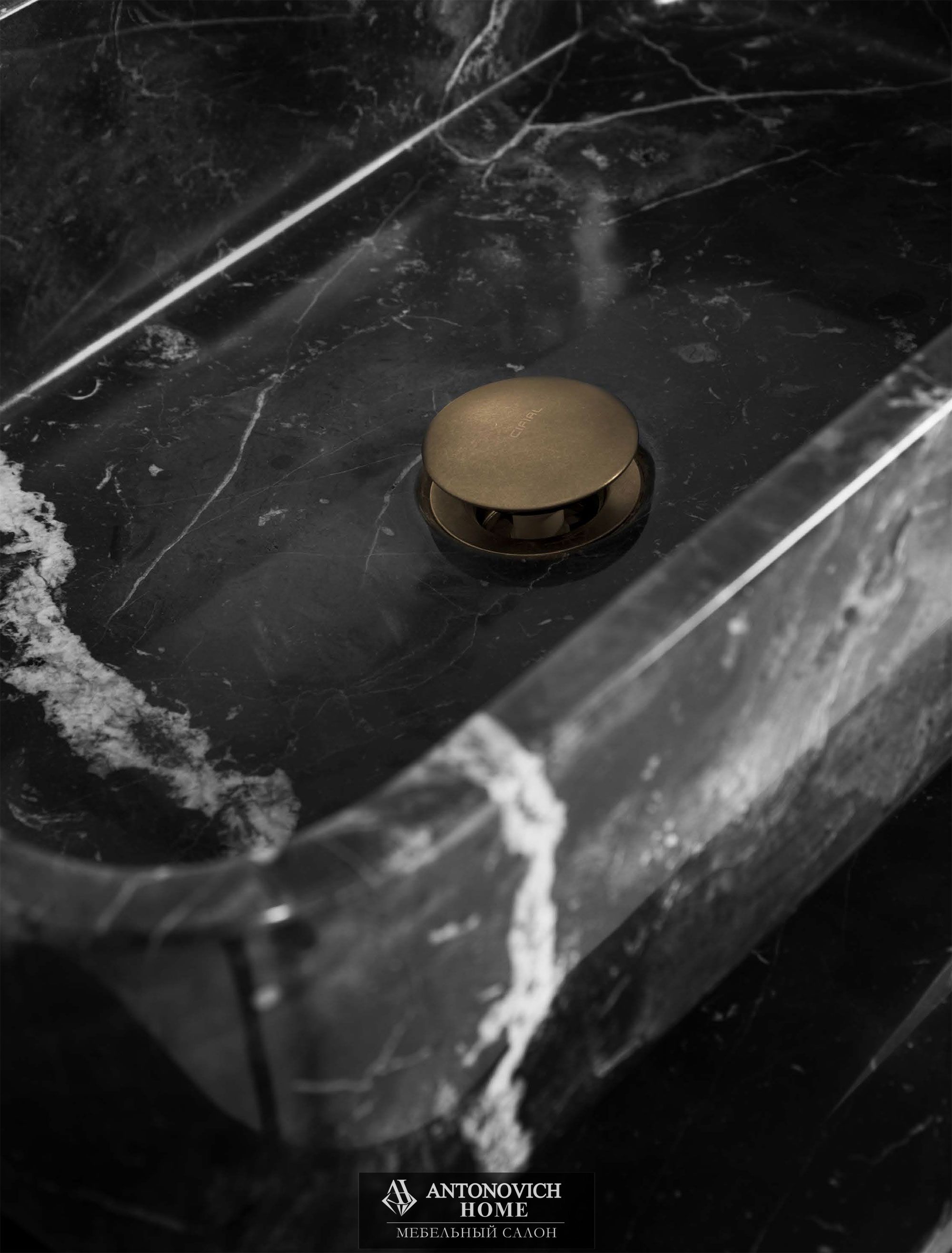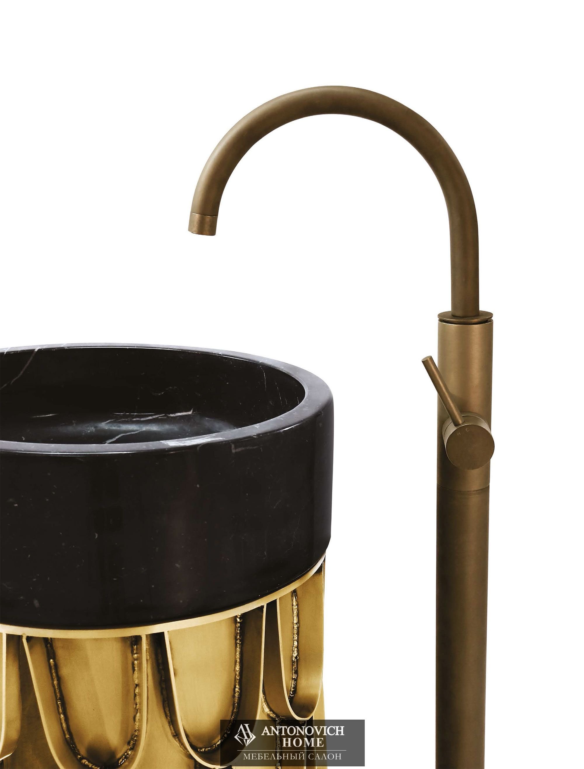 Умывальник Koi имеет узорчатое состаренное медное тело. Он имеет большую квадратную раковину из мрамора Nero Marquina, также доступную в белом мраморе Estremoz, Carrara, Гватемале или Emperador. Это идеальный образец дизайна для смелого украшения в роскошной ванной комнате.