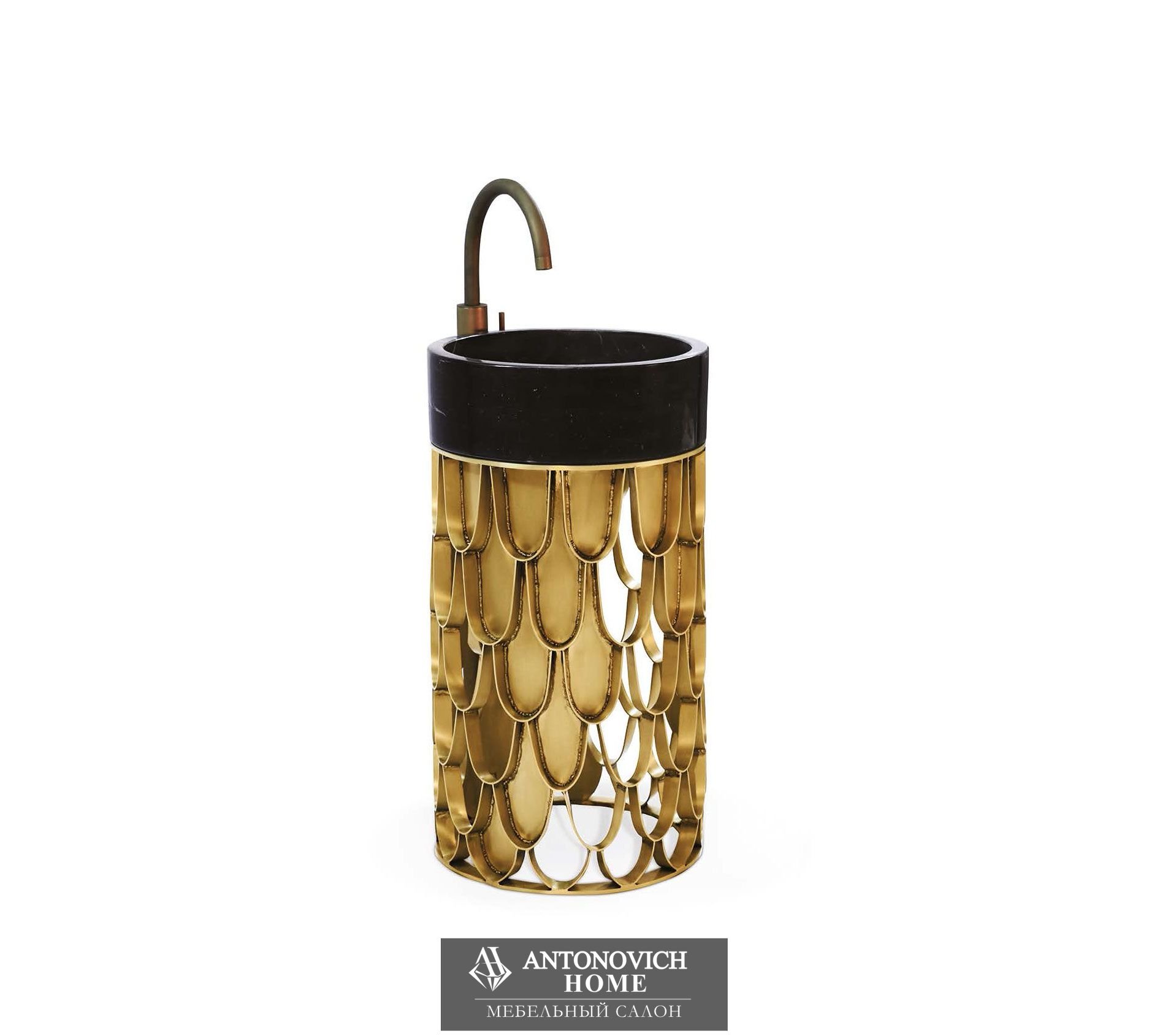 Умывальник Koi (круглый) — это круглая отдельно стоящая конструкция, выполненная из состаренной матовой латуни. Так как он использует масштабную модель, основанную на карпе кои, он каким-то образом создает оптическую иллюзию ячеистой сети. Он оснащен раковиной с рабочей поверхностью из мрамора Nero Marquina.