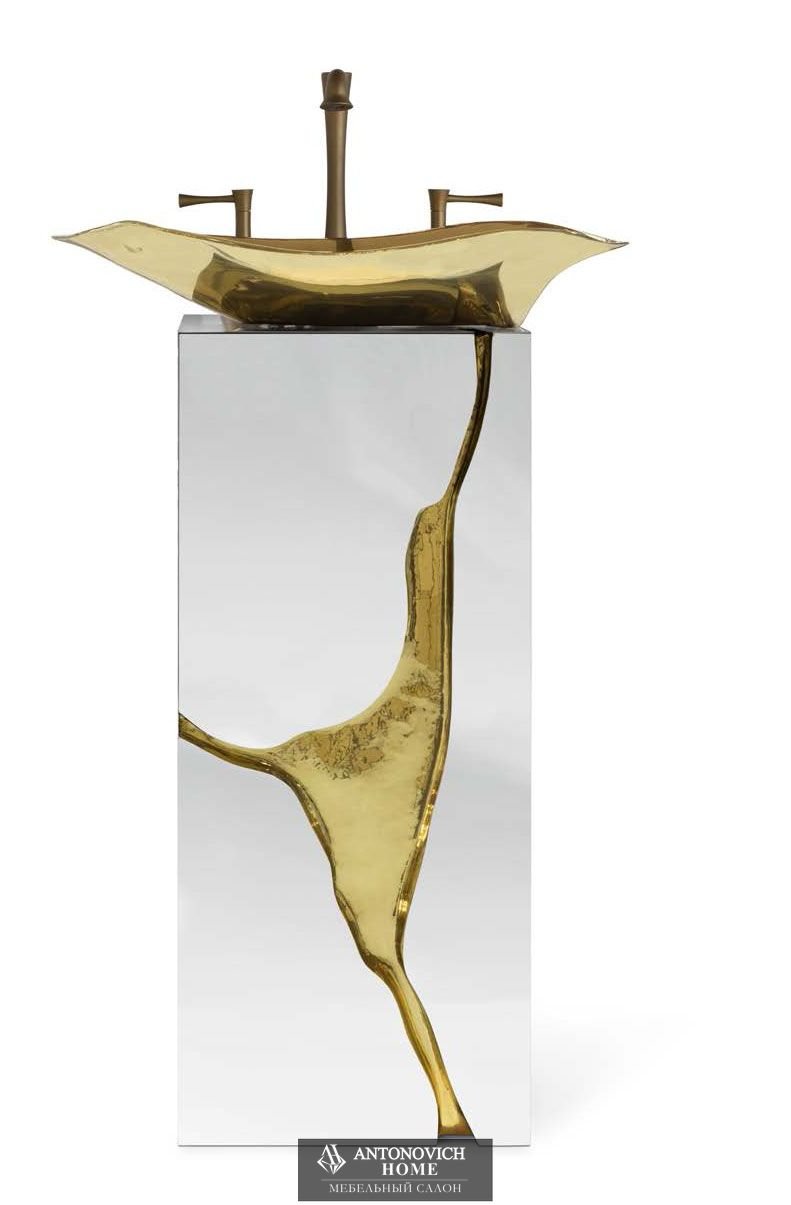 Умывальник LAPIAZ — это квадратная отдельно стоящая плита с трещинами из натурального камня. Умывальник изготовлен вручную из полированной латуни. Деревянная конструкция покрыта нержавеющей сталью, что придает ей роскошный отражающий эффект. Кроме того, литая медная раковина и полированные латунные капли показывают миру богатый и золотой интерьер.