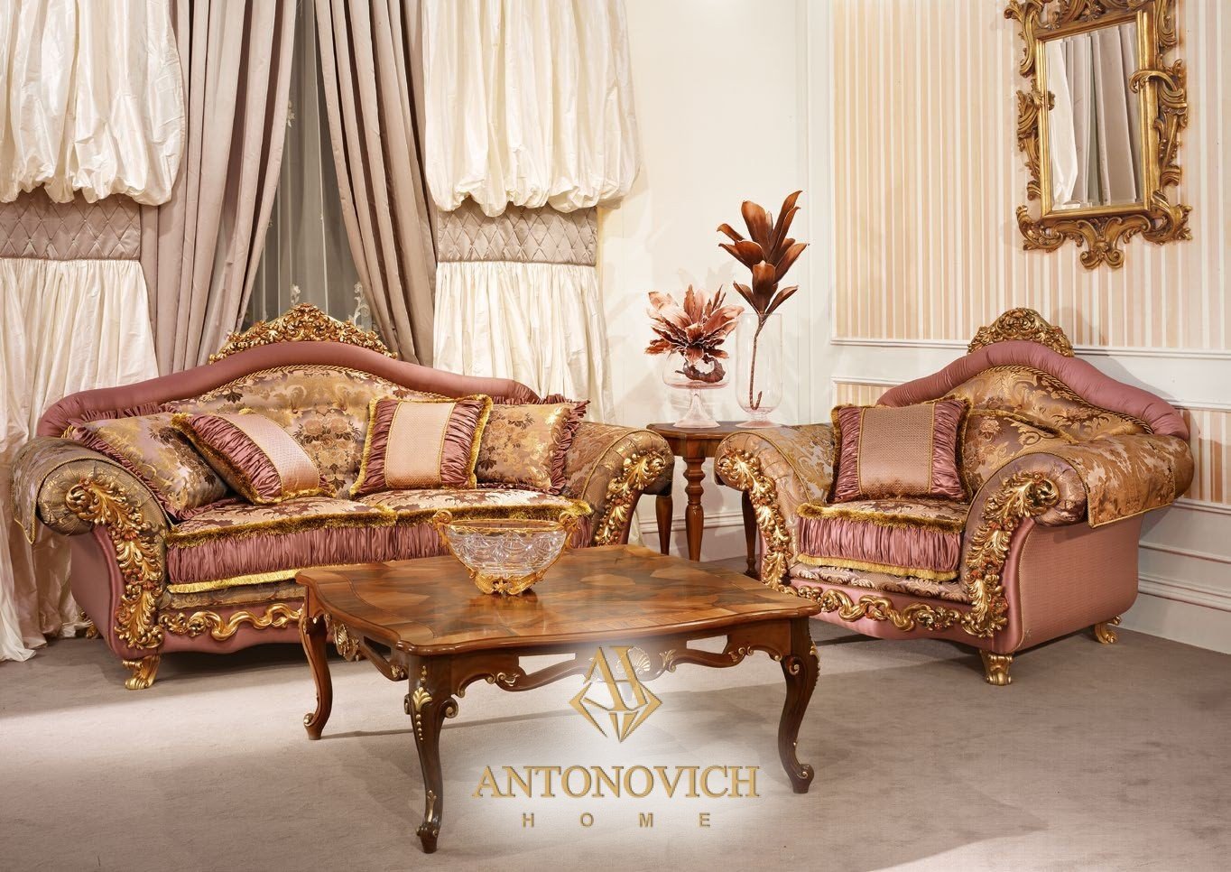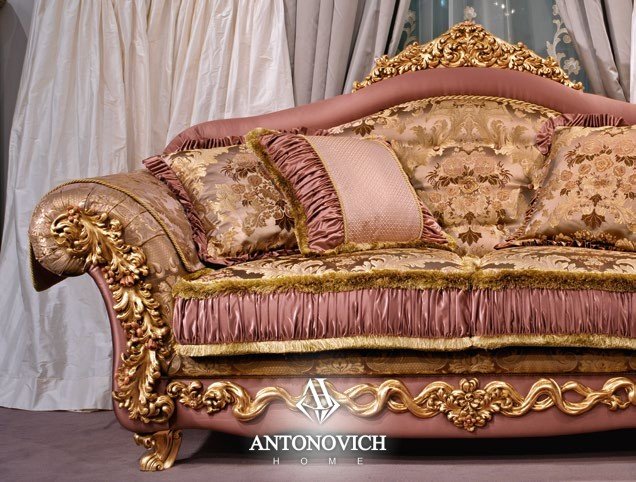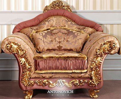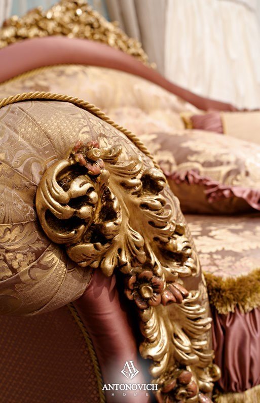 Искусная работа мастеров видна в каждой малейшей детали и элементе: изящная рельефная резьба подлокотников, спинок и ножек мебели, ослепительная красота элитных обивочных тканей, в тон подобранных к богатой отделке из позолоты и серебра — всё в этой коллекции имеет утончённую элегантность, где каждый мебельный предмет прекрасно дополняет друг друга.