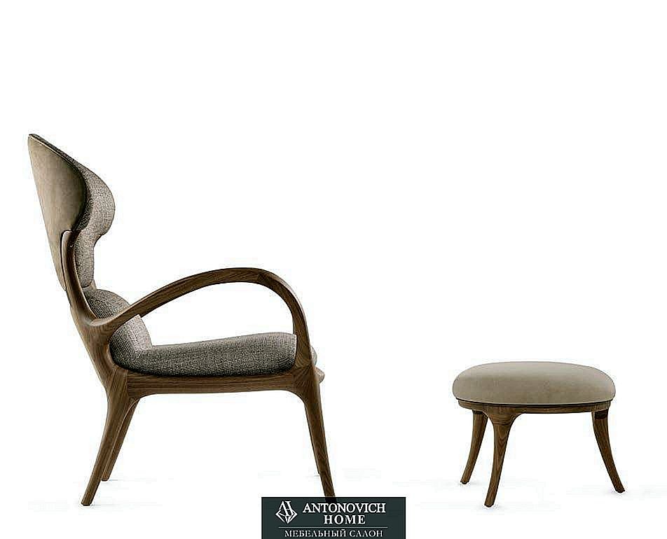 Кресло и пуф Saturn e Saturnino фабрики Ceccotti Collezioni из массива американского ореха, сиденье и подголовник из мягкой гнутой фанеры.