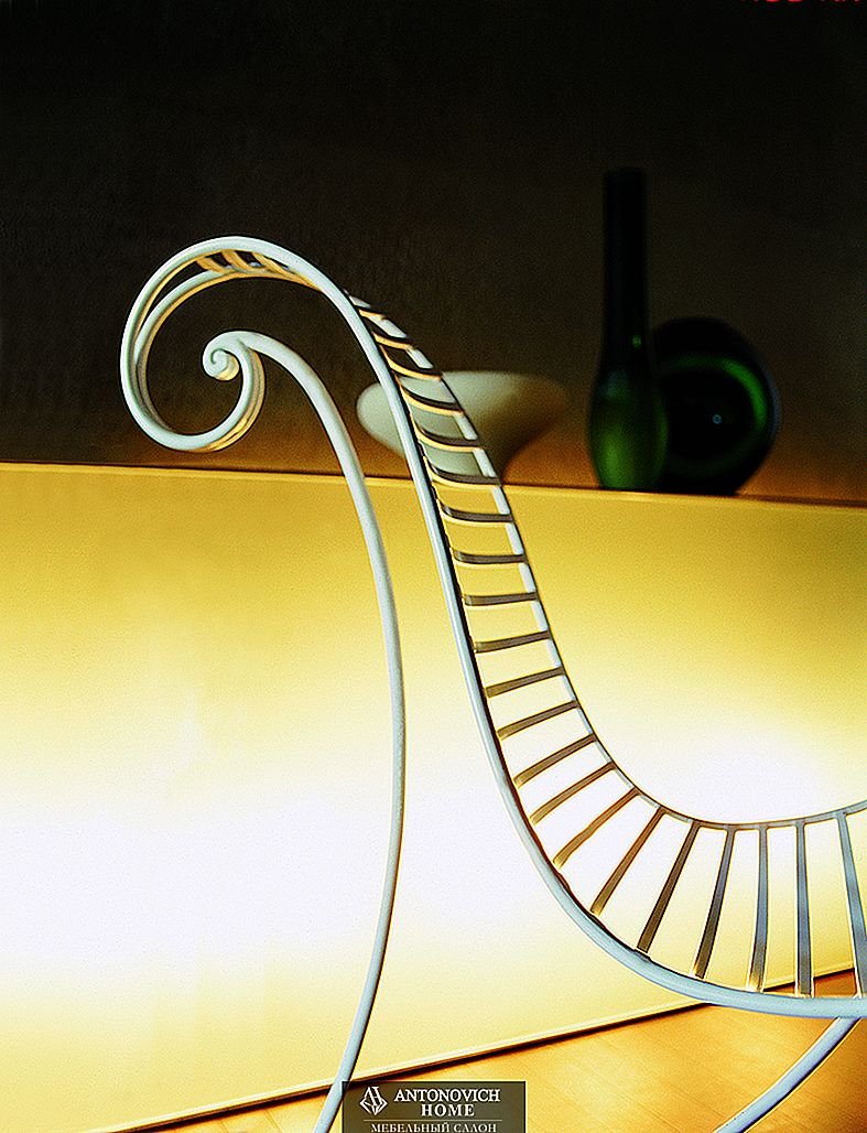 Стул Spine Chair фабрики Ceccotti Collezioni со структурой из железного прута 10 мм. диаметр, посадочное место 10 мм. Полосы плоские, доступные цвета: белый, оранжевый, голубой, черный, сусальное золото, сусальное серебро.