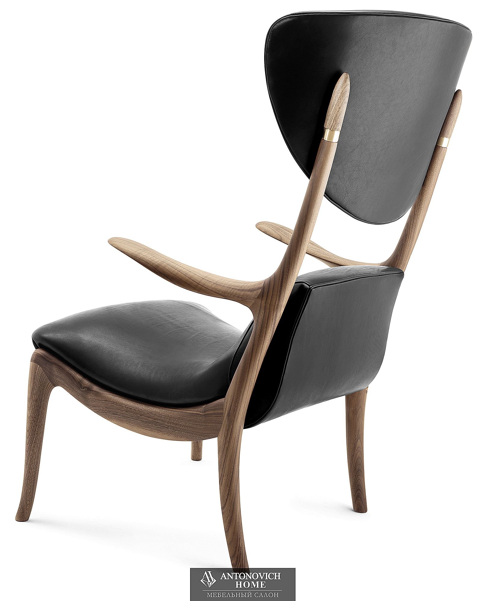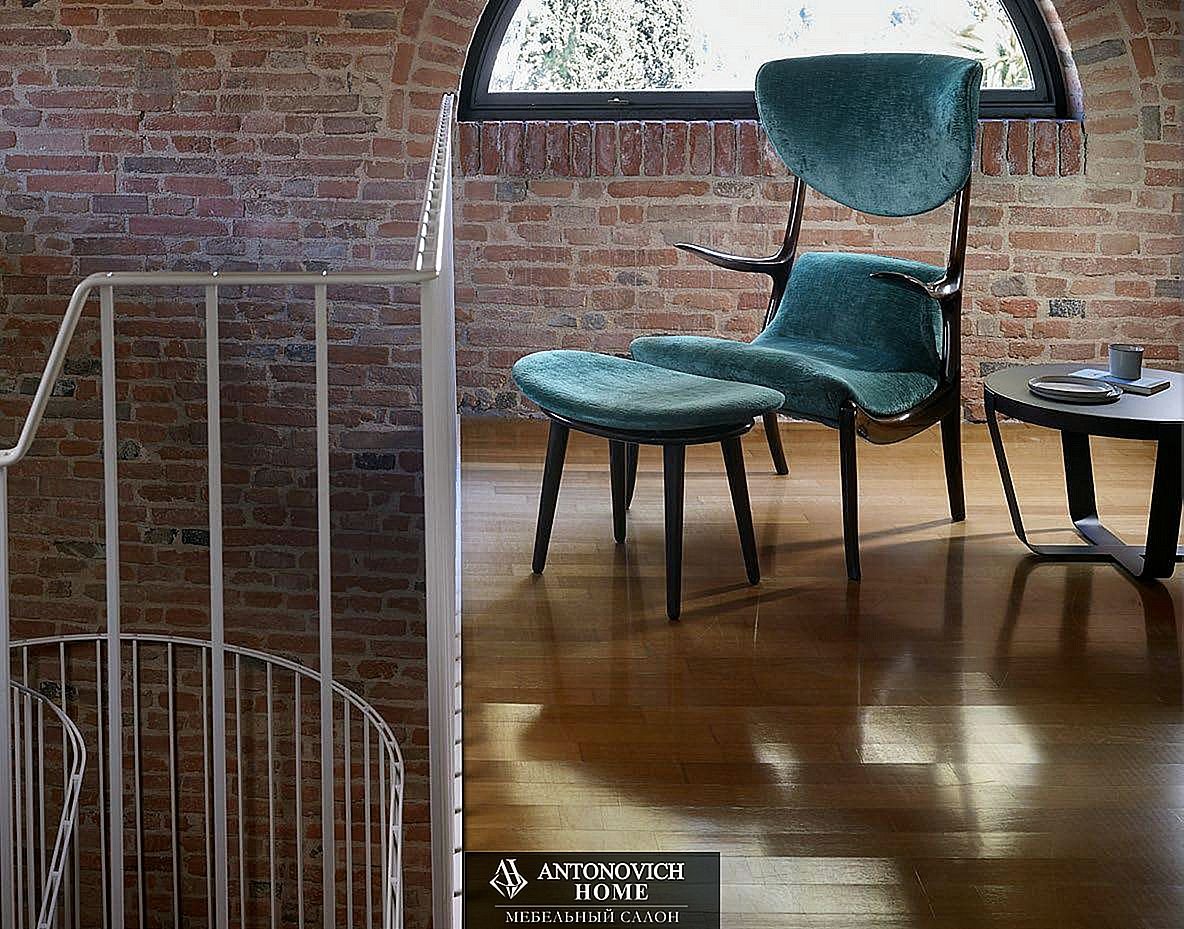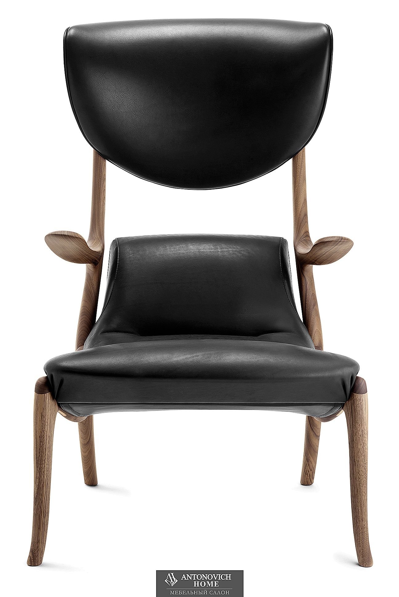Кресло и пуф Star Treck фабрики Ceccotti Collezioni из массива американского ореха, сиденье и подголовник из мягкой гнутой фанеры.