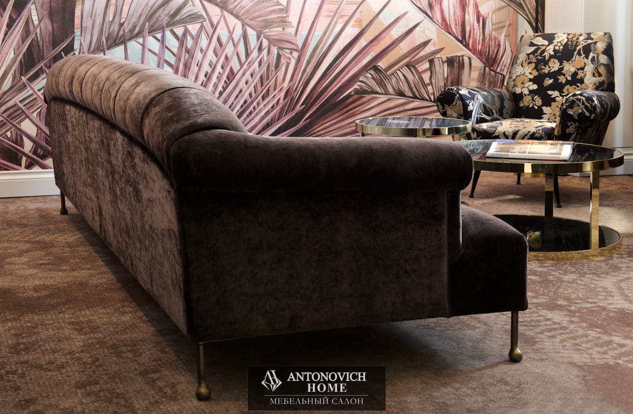 Luis фабрики Dom Edizion — это очаровательный диван, который легко может стать центром внимания в пространстве, в котором он расположен. Его дизайн, отдаленно напоминающий эпоху Возрождения, стал уникальным благодаря продуманной конструкции спинки, конструкции подлокотников и изысканной ножке, изготовленной из металла с помощью гальванической техники.