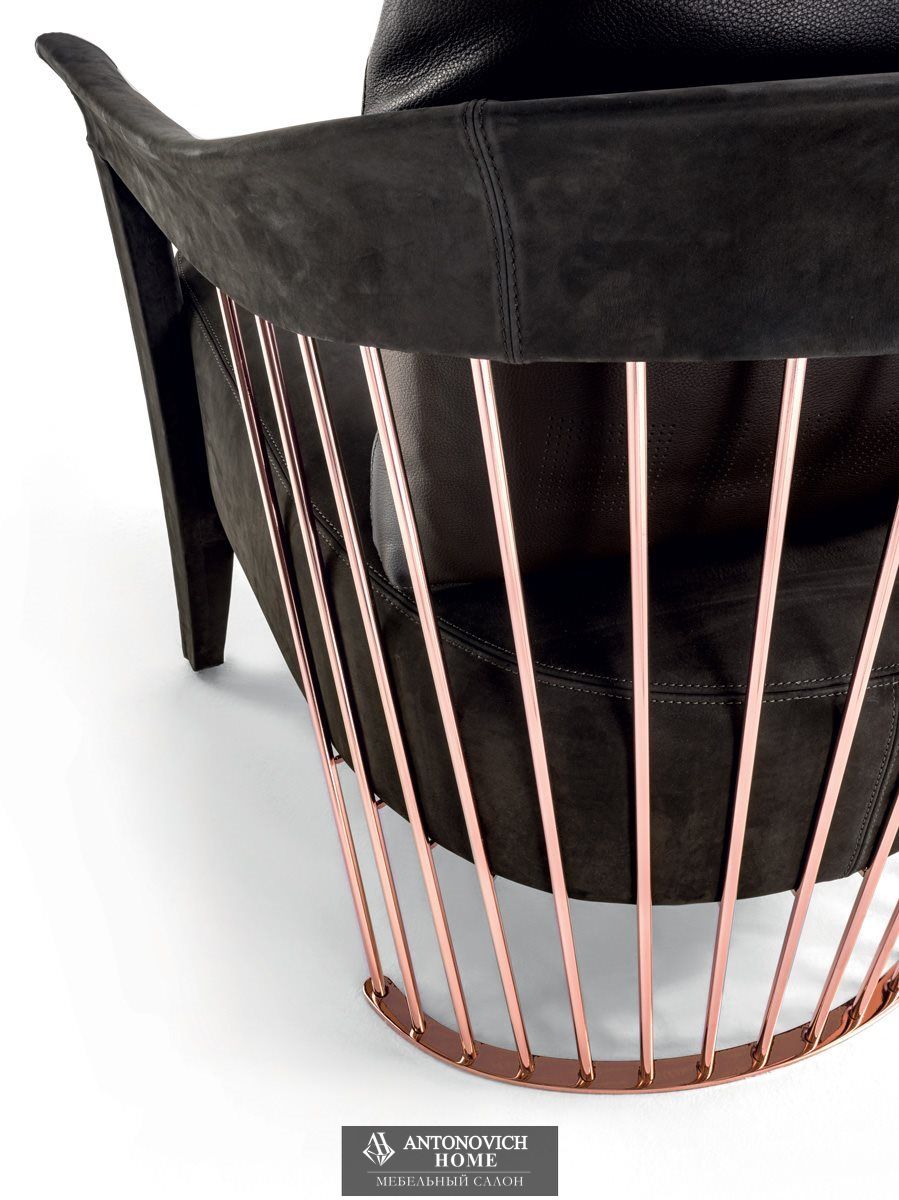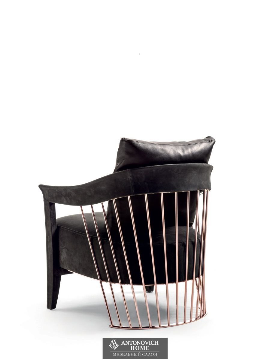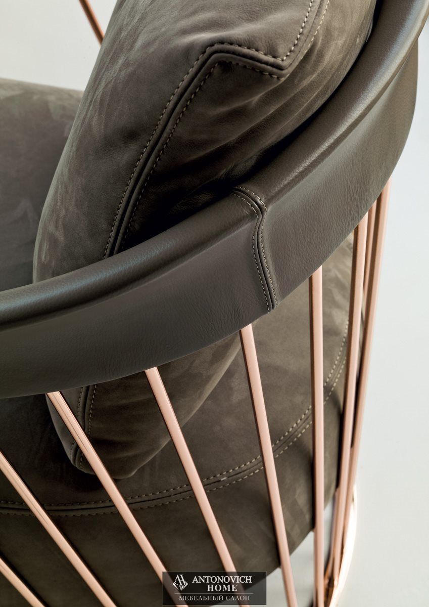 Металлическая спинка кресла Dorothy фабрики Longhi состоит из рамы, разрезанной посредством лазера, и металлических трубок, собранных по отдельности по методу ремесленной