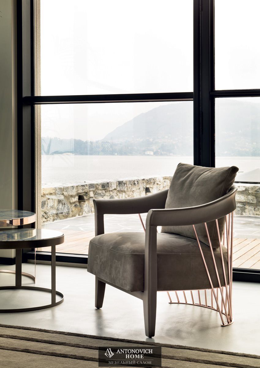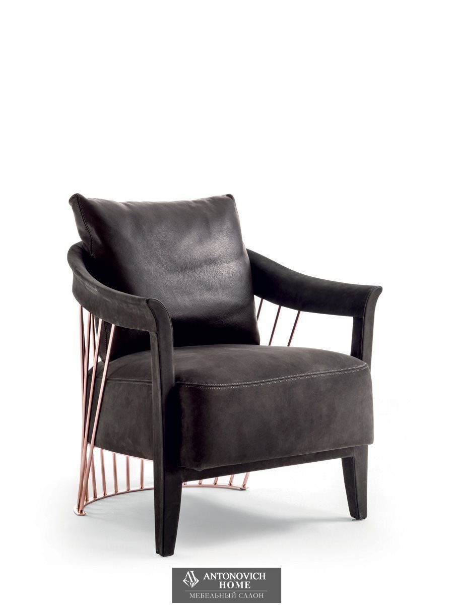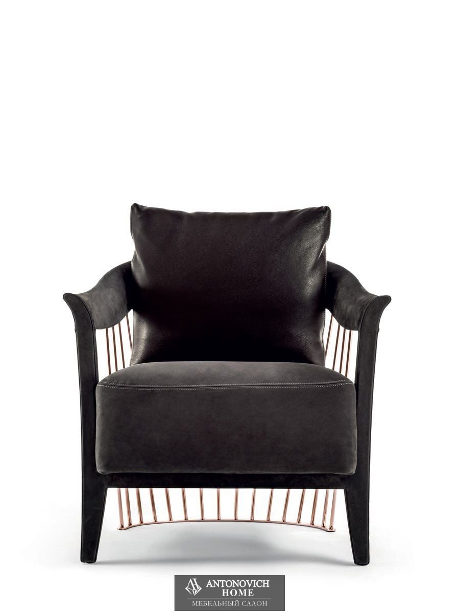 Металлическая спинка кресла Dorothy фабрики Longhi состоит из рамы, разрезанной посредством лазера, и металлических трубок, собранных по отдельности по методу ремесленной