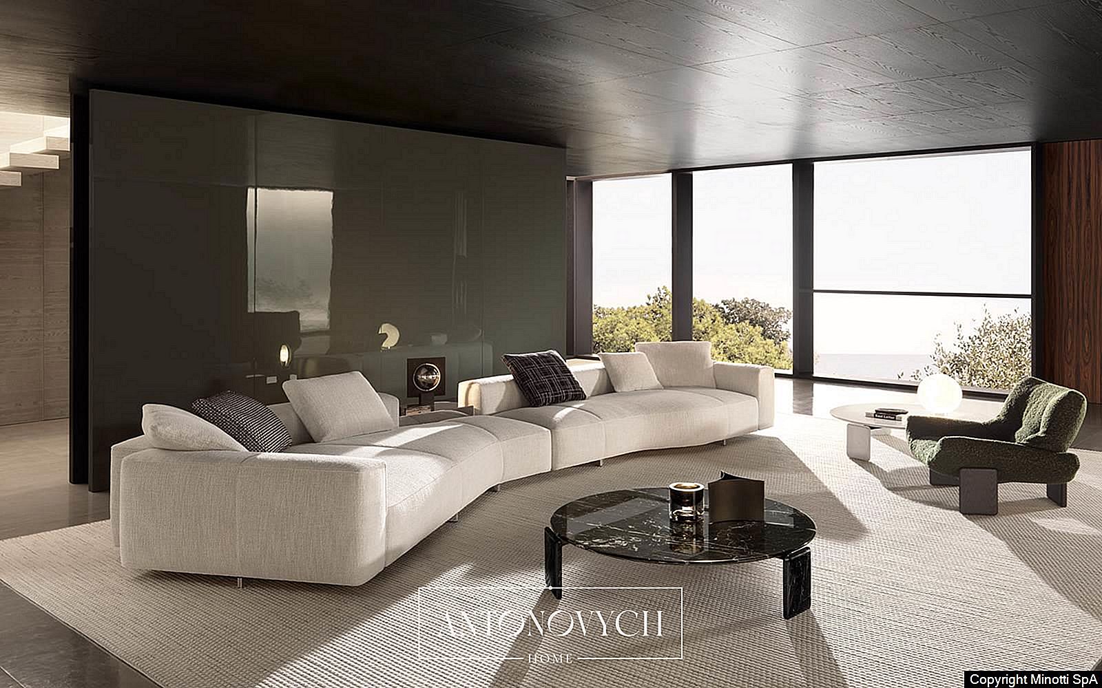 Yves фабрики Minotti — это диваны, в которых строгие линии сочетаются с плавными изгибами, создавая идеальный баланс формы и функциональности. Эта уникальная система воплощает рациональные объемы и органические формы, дополненные неожиданными и динамичными деталями на заказ. Дизайн Yves погружает нас в атмосферу 1970-х годов, передавая их неуловимое очарование.