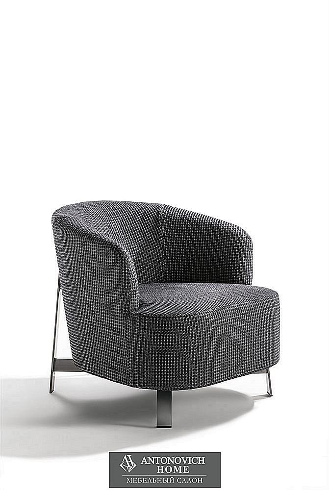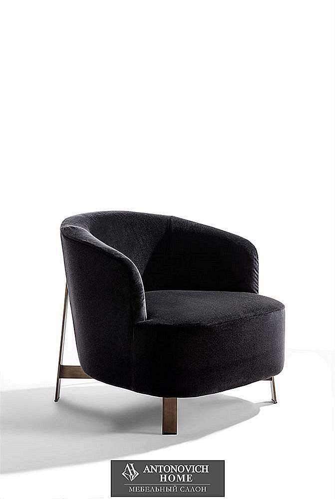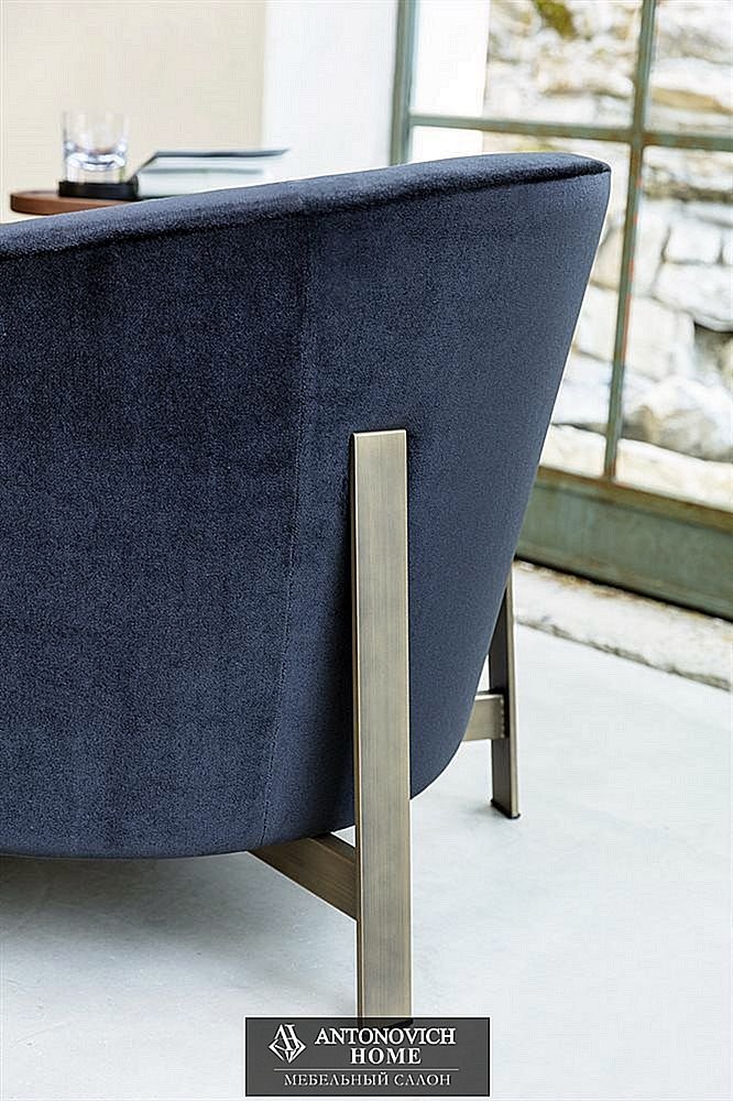 Кресло Copine steel от фабрики Porada с металлическим каркасом с отделкой из черного никеля или матовой бронзовой латуни и обивкой из ткани коллекции. Чехол из ткани съемный, а чехол из кожи несъемный. Можно комбинировать разные ткани для внешней и внутренней частей мягкой конструкции. Внутренняя оболочка из фанеры тополя и массива ели с сиденьем с ремнем. Набивка выполнена из ударопрочного полиуретана различной плотности.