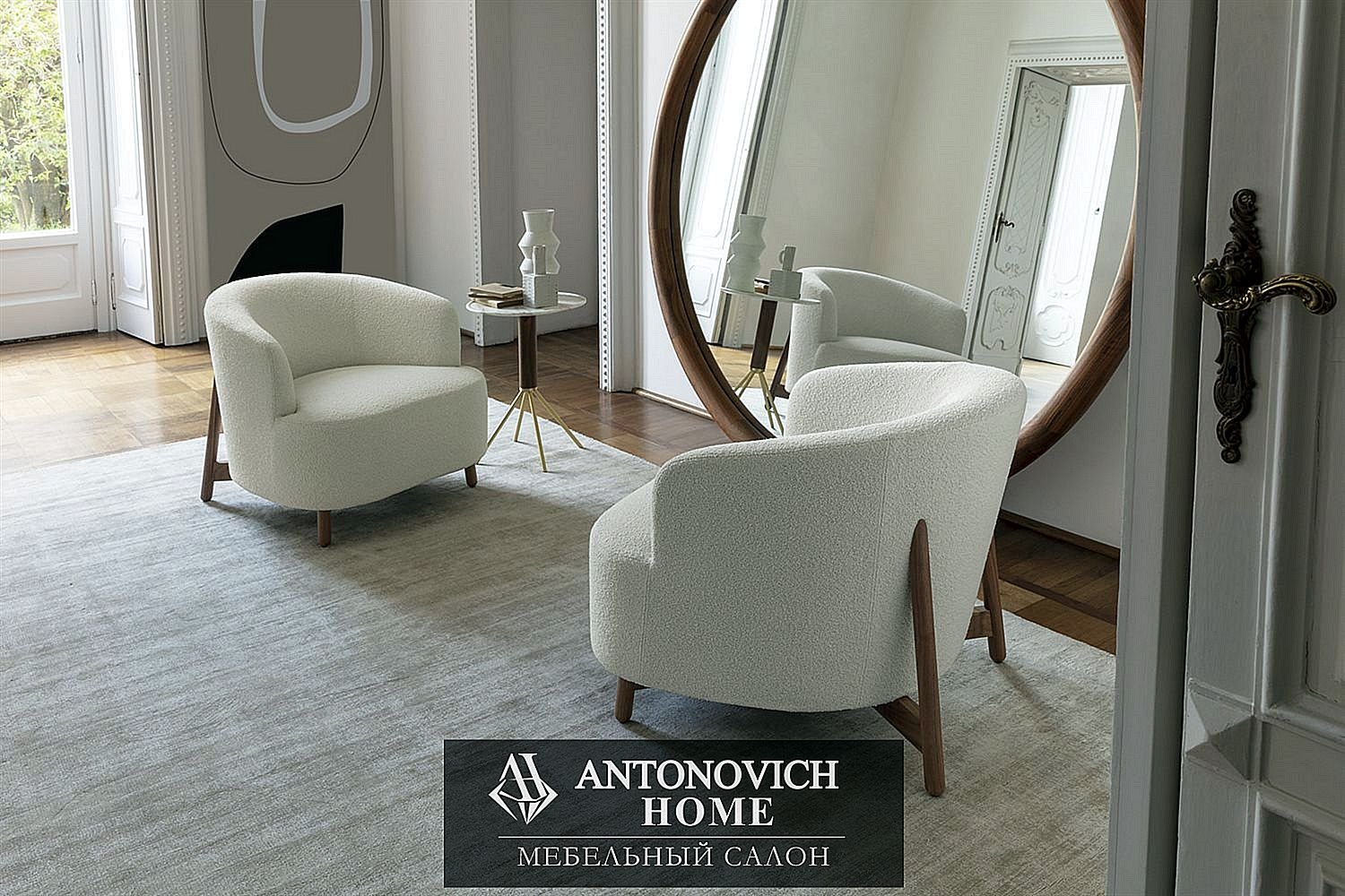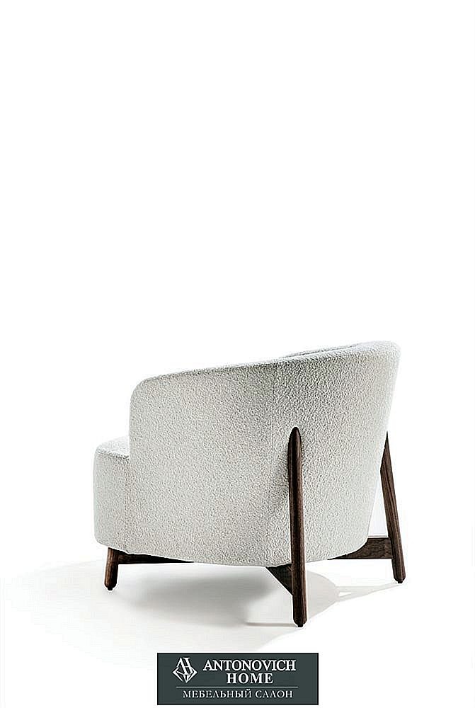 Кресло Copine wood итальянской компании Porada с каркасом из массива ореха каналетта и обивкой из ткани коллекции. Чехол из ткани съемный, а чехол из кожи несъемный. Можно комбинировать разные ткани для внешней и внутренней частей мягкой конструкции. Внутренняя оболочка из фанеры тополя и массива ели с сиденьем с ремнем. Набивка выполнена из ударопрочного полиуретана различной плотности.