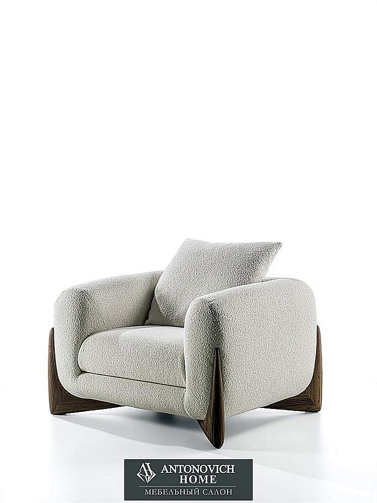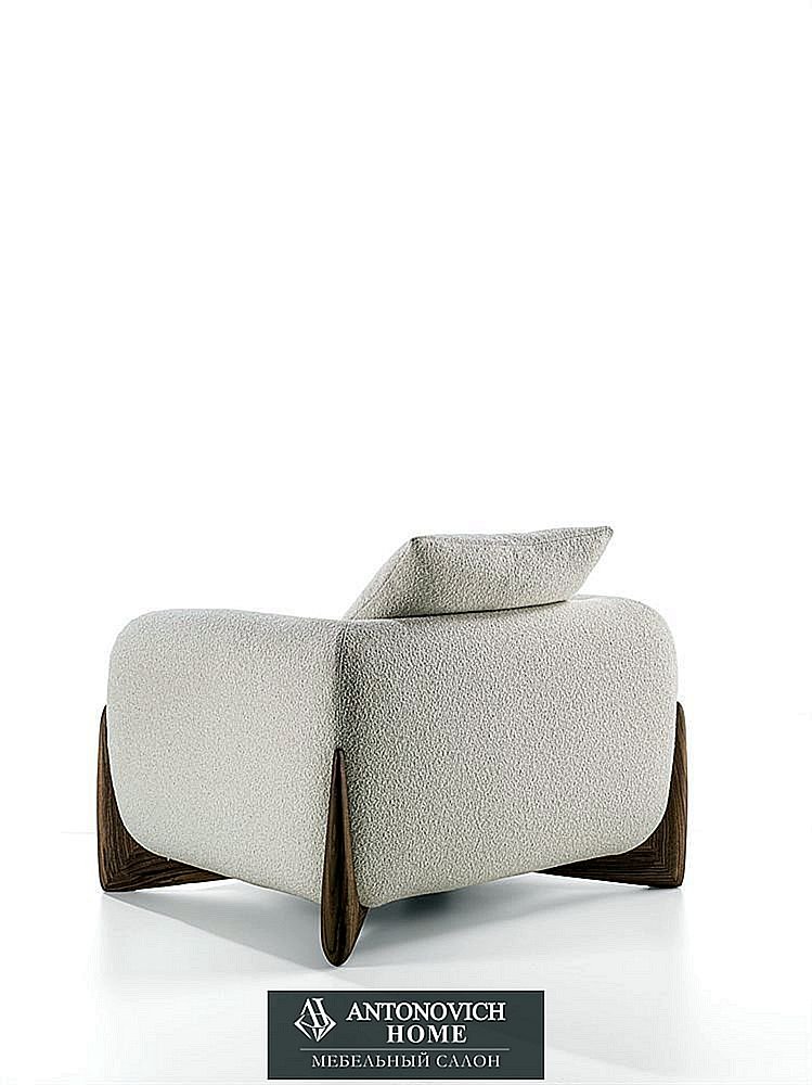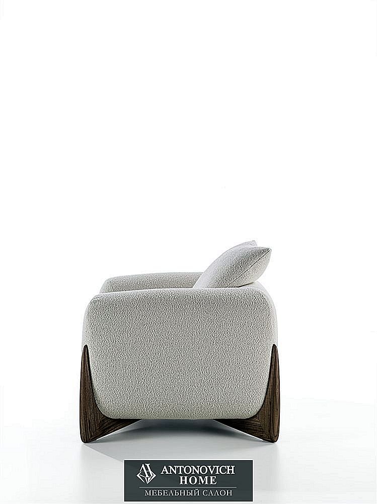 Кресло SOFTBAY итальянской мебельной фабрики Porada на четырех ножках из массива ореха каналетта с обивкой из ткани коллекции. Обложка съемная из ткани и фиксируется из кожи. Внутренняя структура из фанеры тополя и массива ели с эластичными ремнями. Набивка выполнена из ударопрочного пенополиуретана различной плотности. Подушка сиденья из ударопрочного пенополиуретана с набивкой из хлопка и вельвета. Подушка спинки с наполнителем из пера (55x55 см).